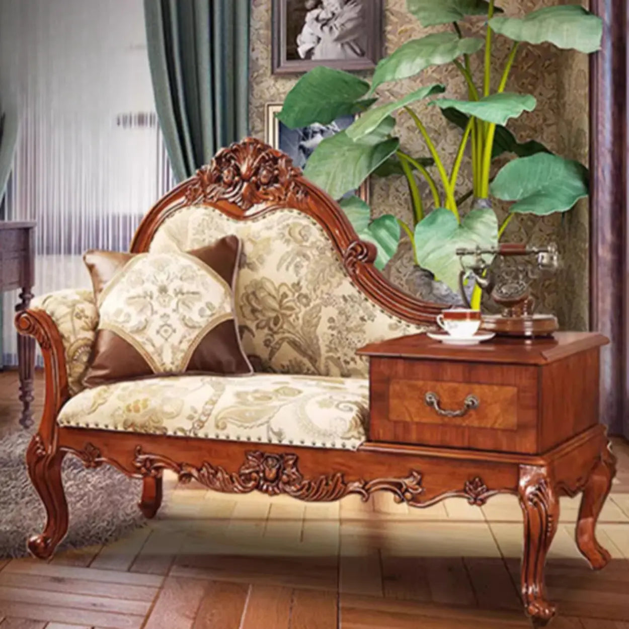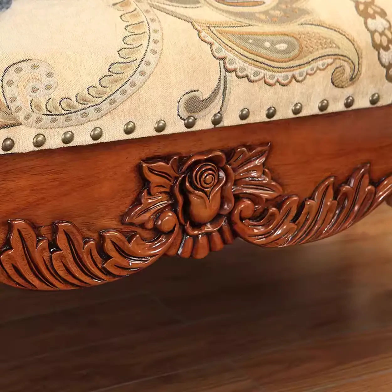 This classic retro sofa chair perfectly combines elegance and functionality. Its exquisite floral patterns and exquisite wood carving details give it a unique artistic feel. It can instantly enhance the luxury of the entire space. At the same time, the practical storage section makes it easy to keep tidy.