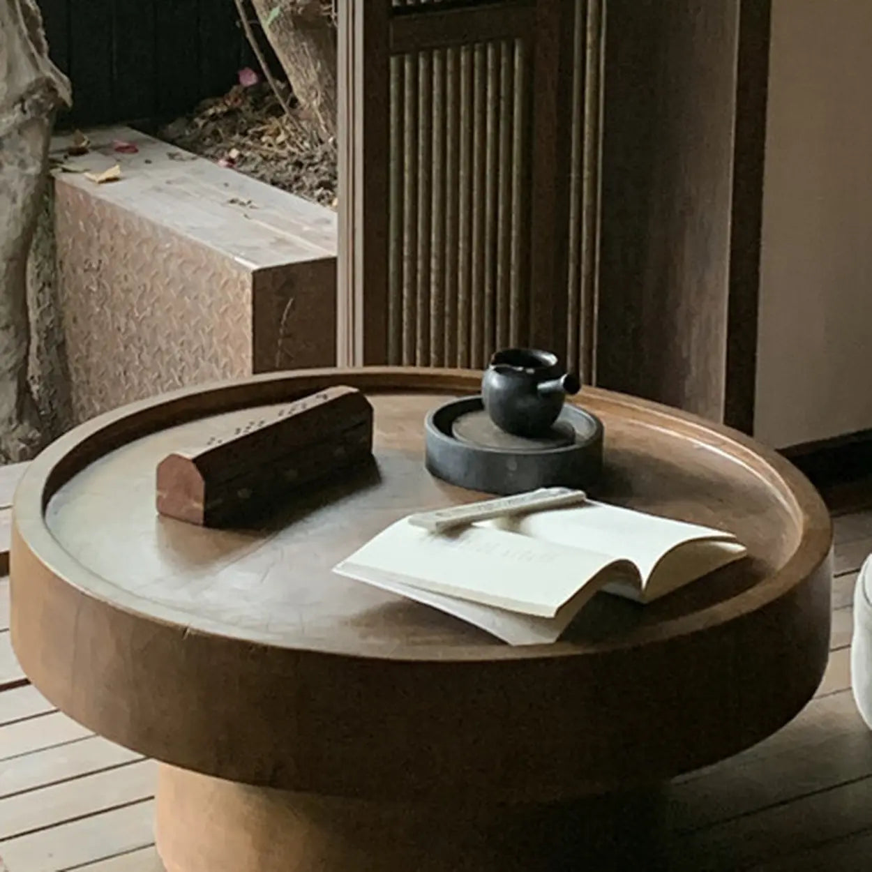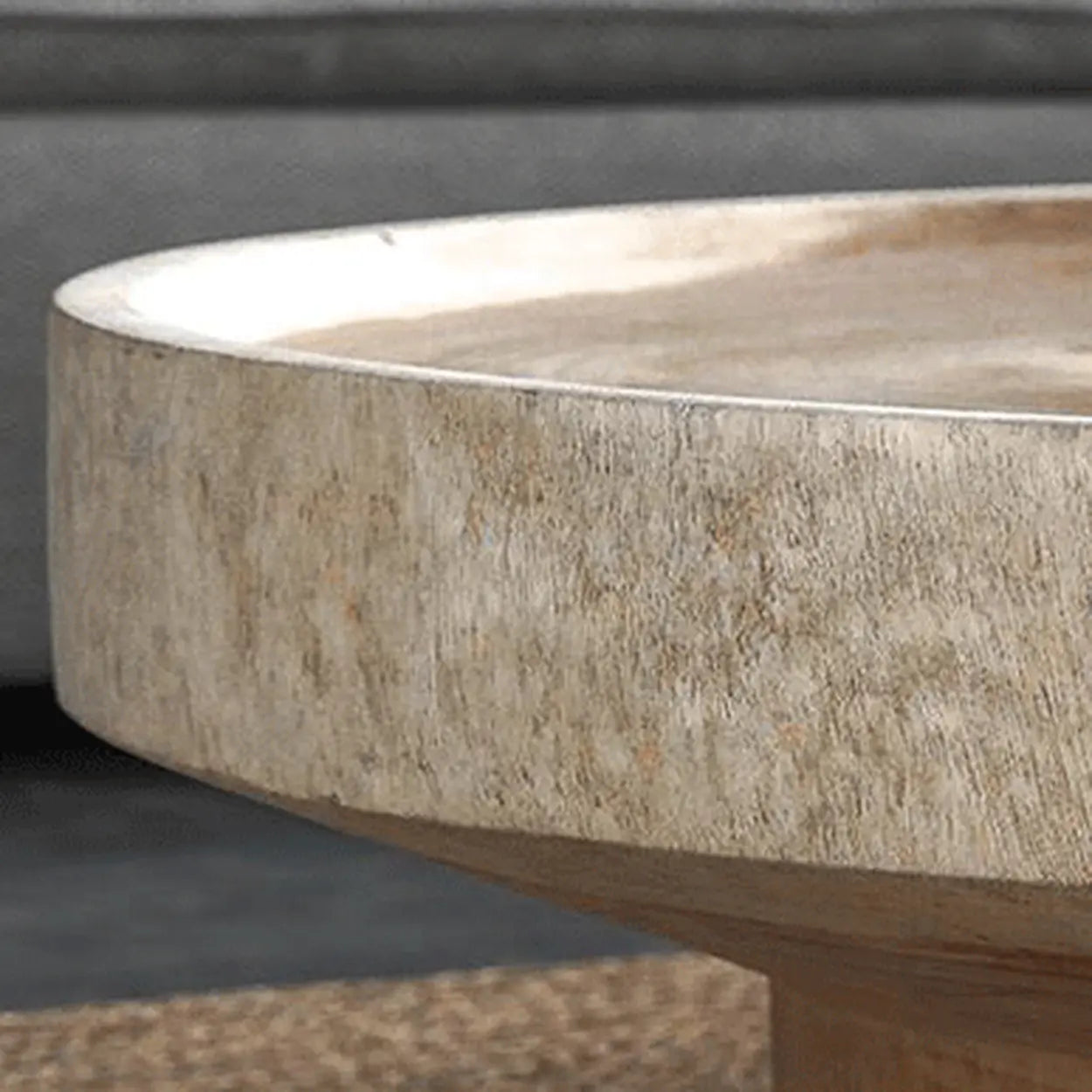 Brown Pine Wood Tray Top Round 1 Tier Coffee Table