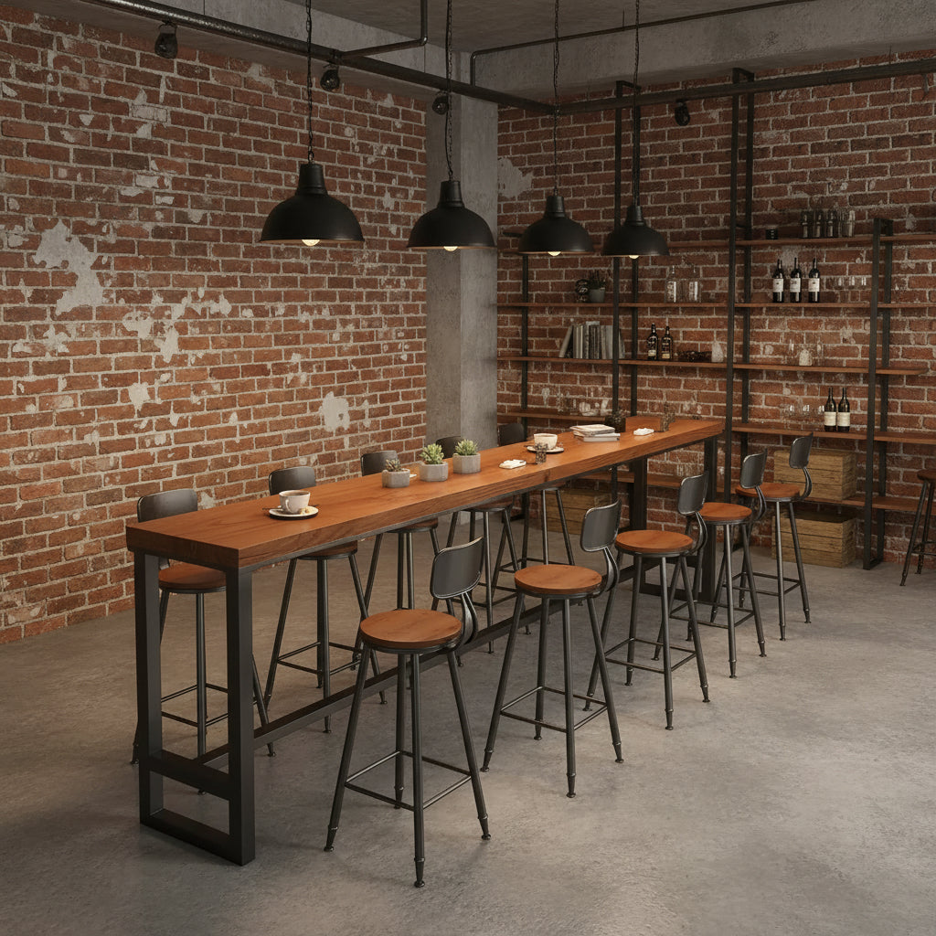 This bar table is an ideal choice for home and commercial spaces. It combines the natural texture of pine wood with durable metal brackets. Its smooth wooden surface is visually appealing and easy to clean, making it suitable for various interior design styles.