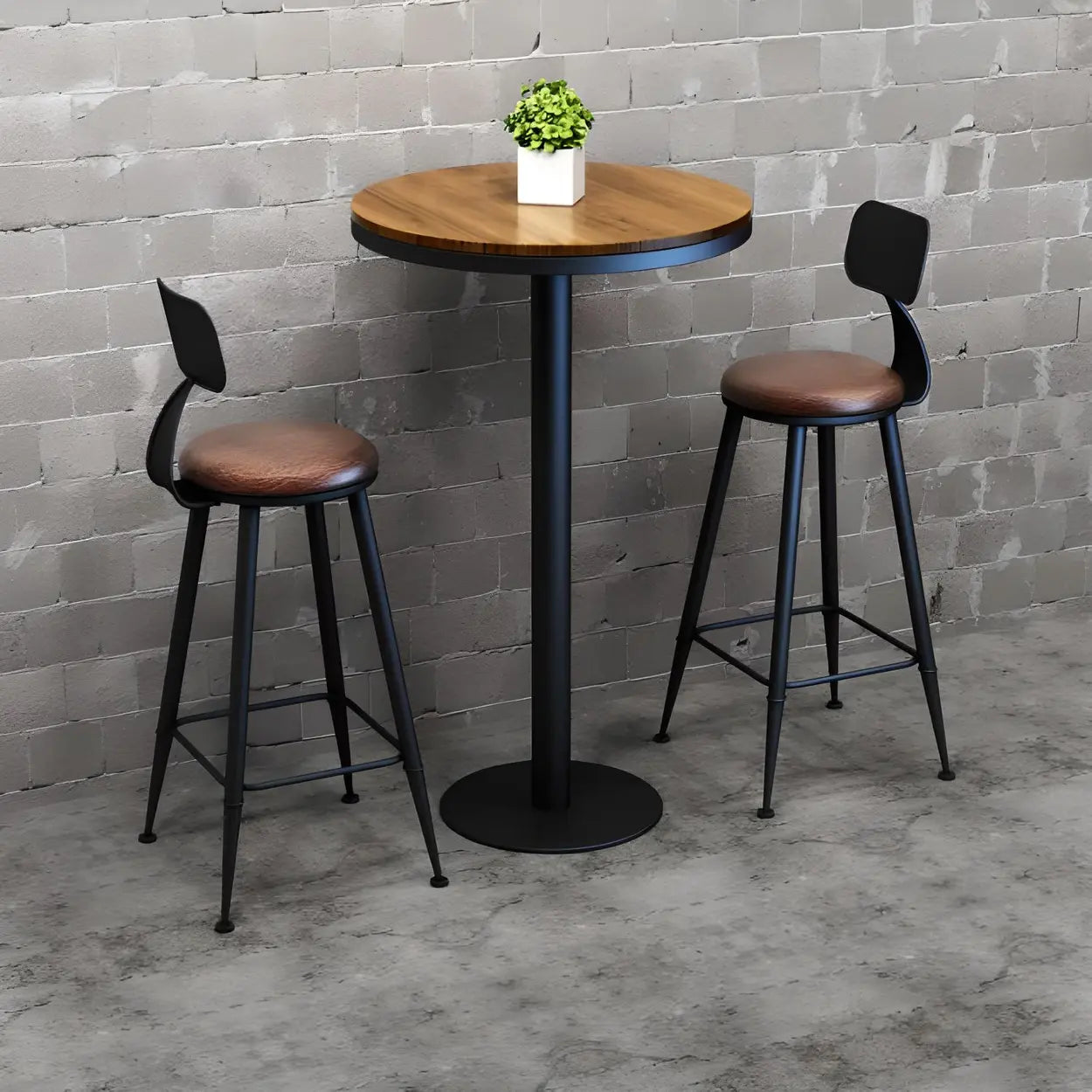 Brown Small Round Wood Metal Tall Bar Table for Gatherings