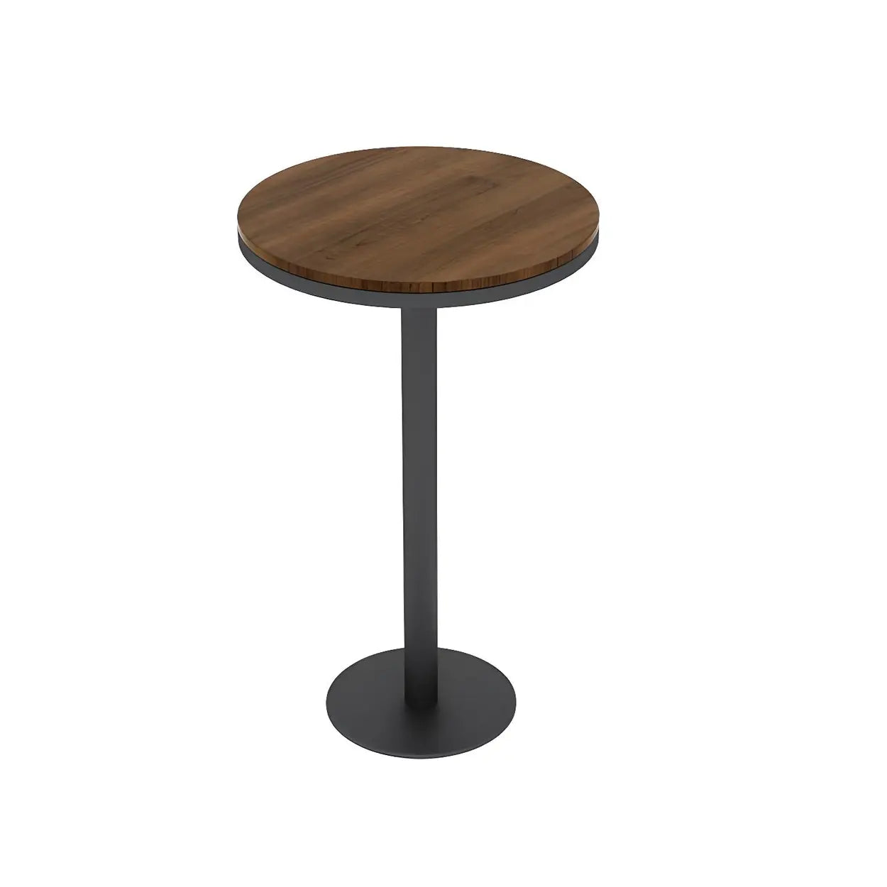 This brown round high bar table adds style to your living space with its simple and modern design. The high-quality solid wood tabletop and sturdy metal base ensure long-lasting and durable use. Whether at home or in a commercial setting, this table is ideal for enjoying gatherings and entertainment.