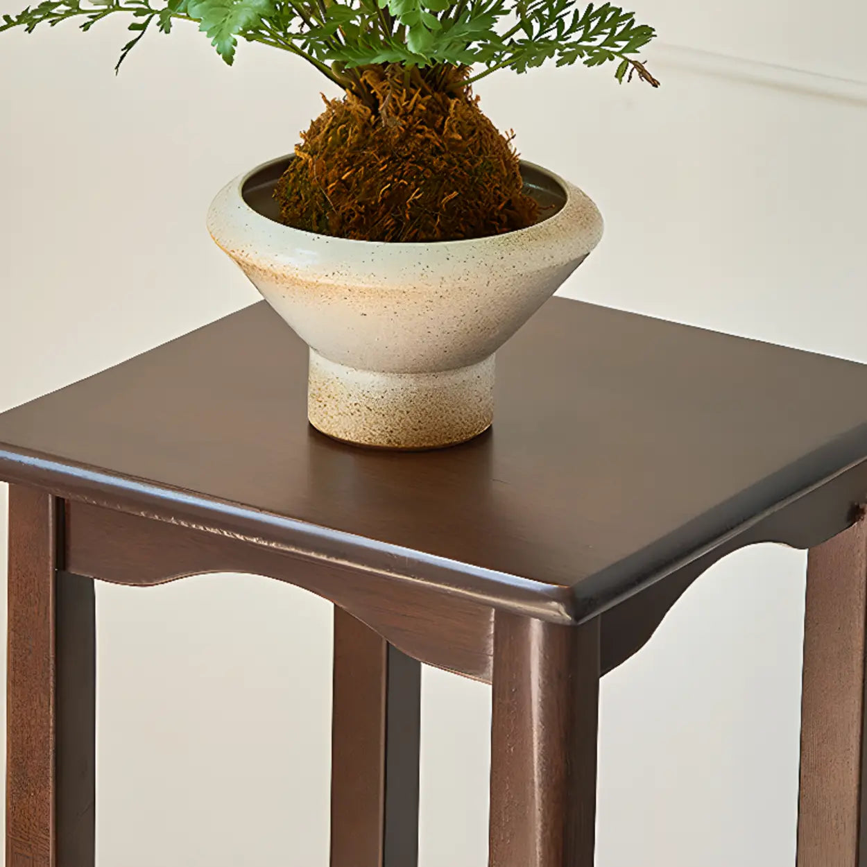 Brown Square Rubberwood Floor Pedestal Plant Stand