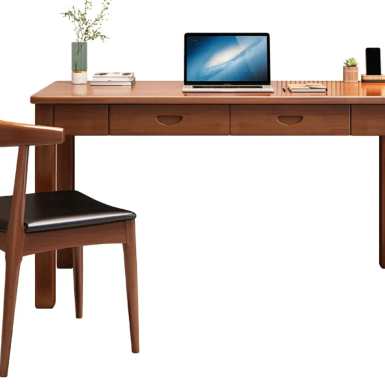 This natural wood desk combines a simple modern style with practical functionality, it can be the best choice for work and study. Whether you need a writing space or an efficient work surface, this table can meet your needs. Different size options ensure the right workspace fits any room size, while built-in drawers provide additional storage and make your work environment more organized. The elegant gray, chestnut, and wood desktop design adds a warm and natural atmosphere to your work area.