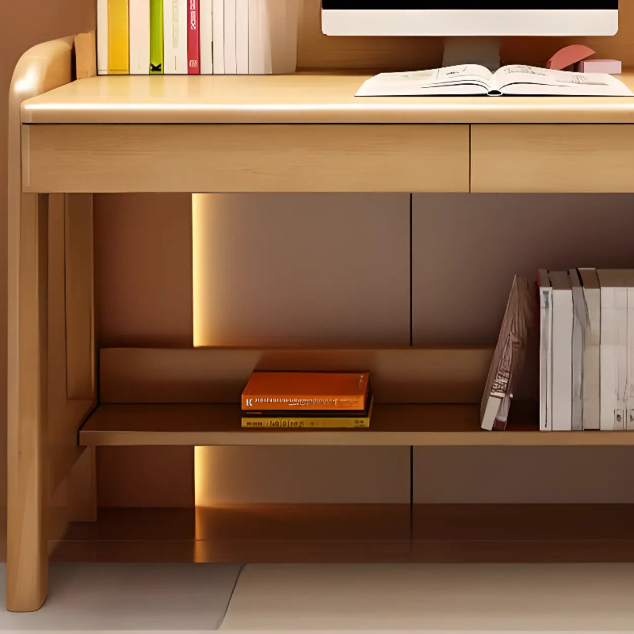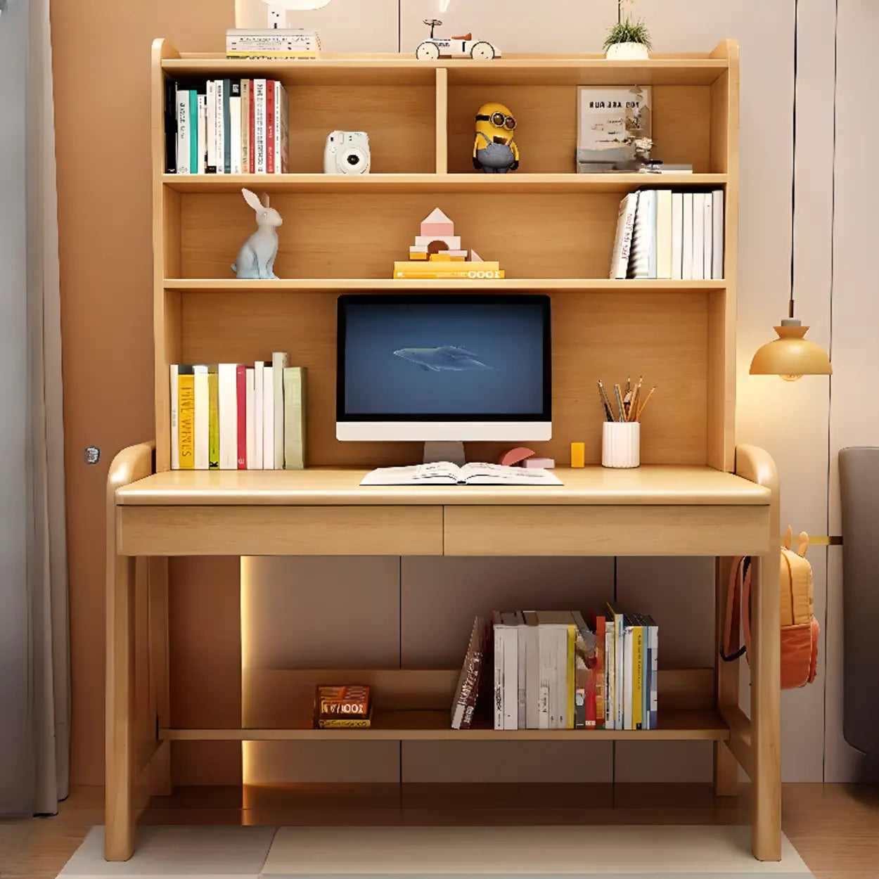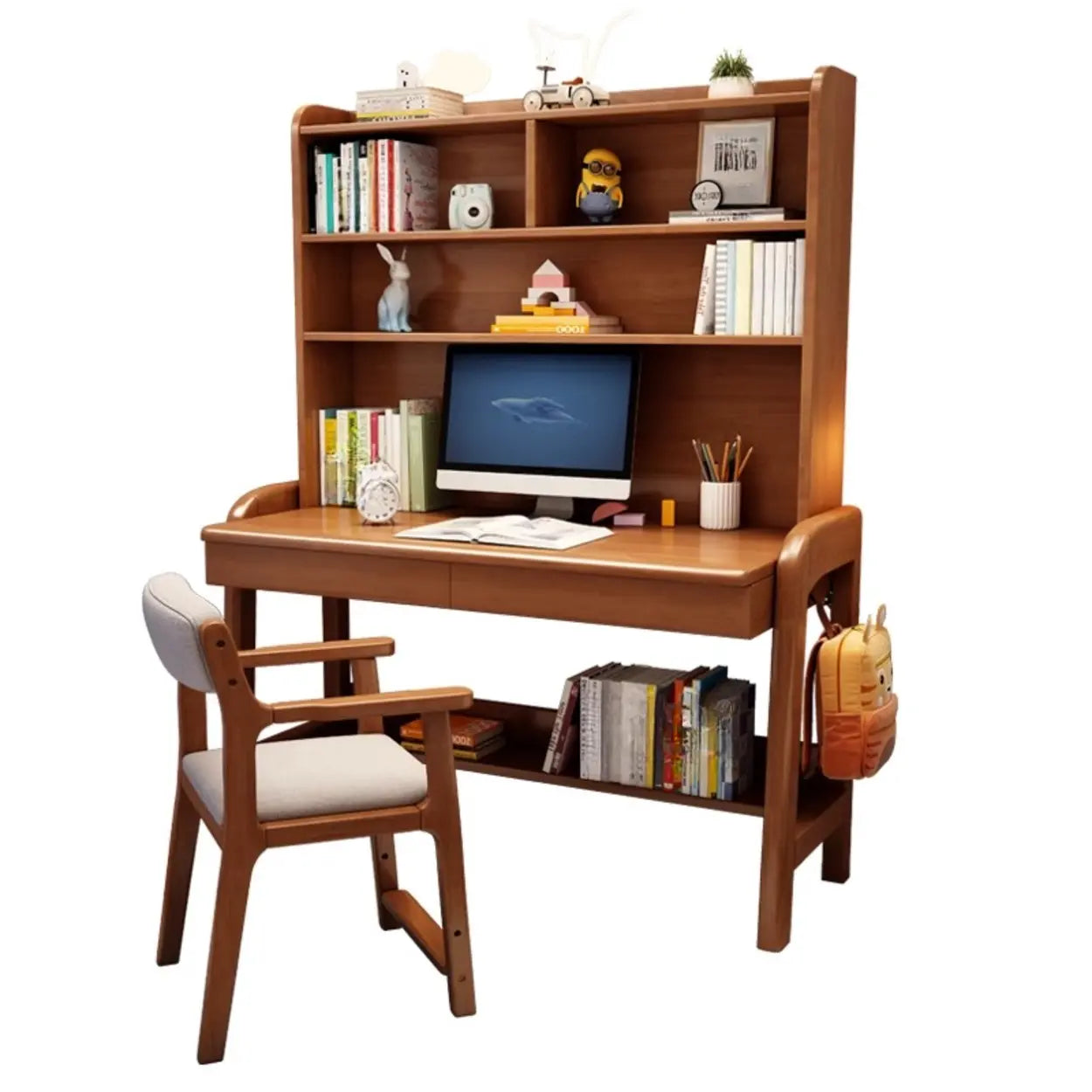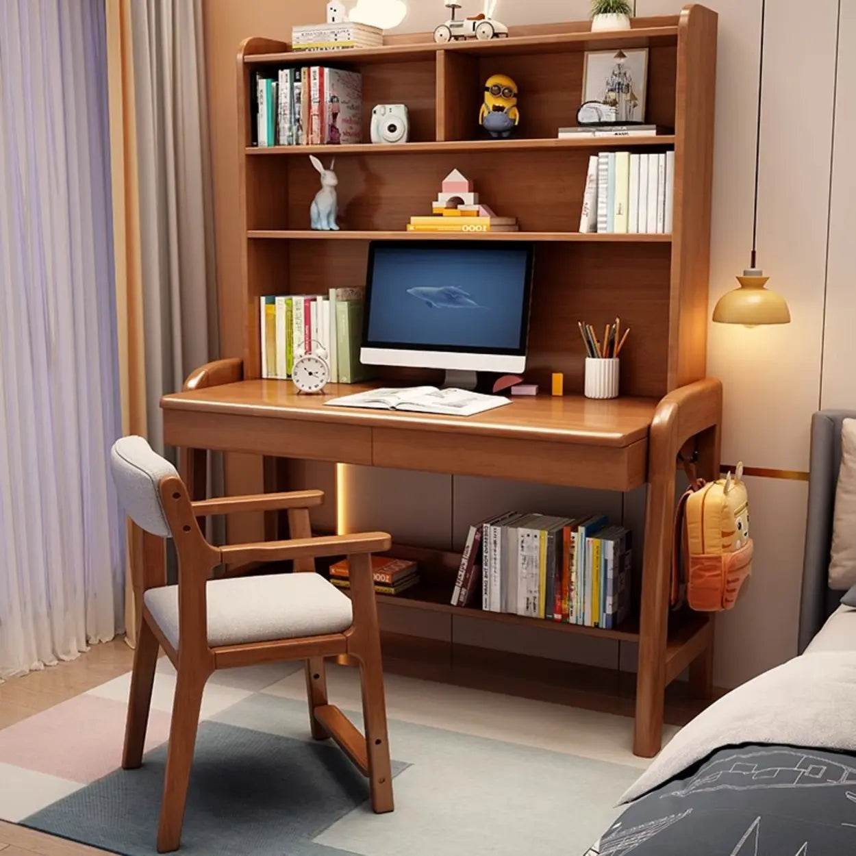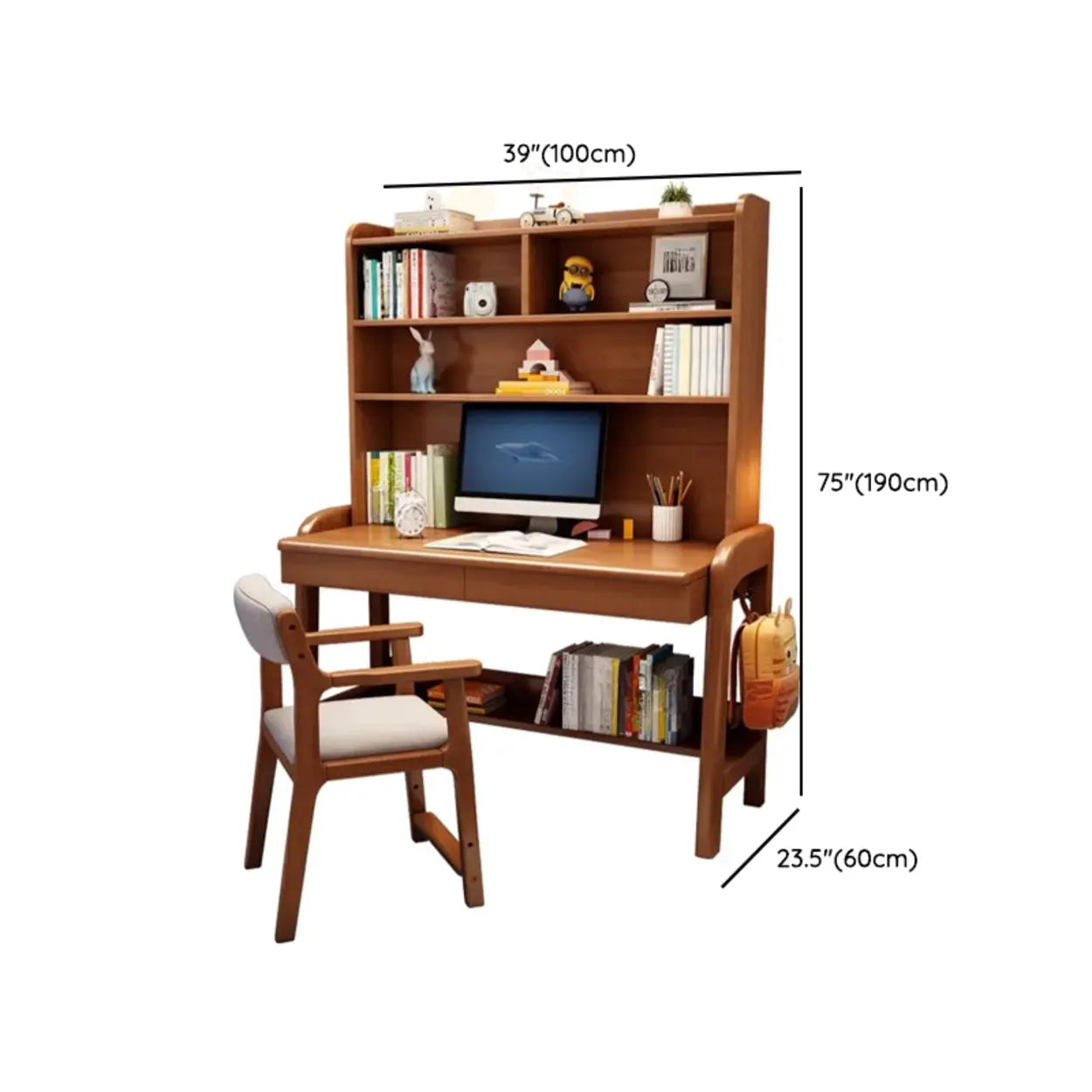 Brown Standard Wood Writing Desk with Hutch and Storage