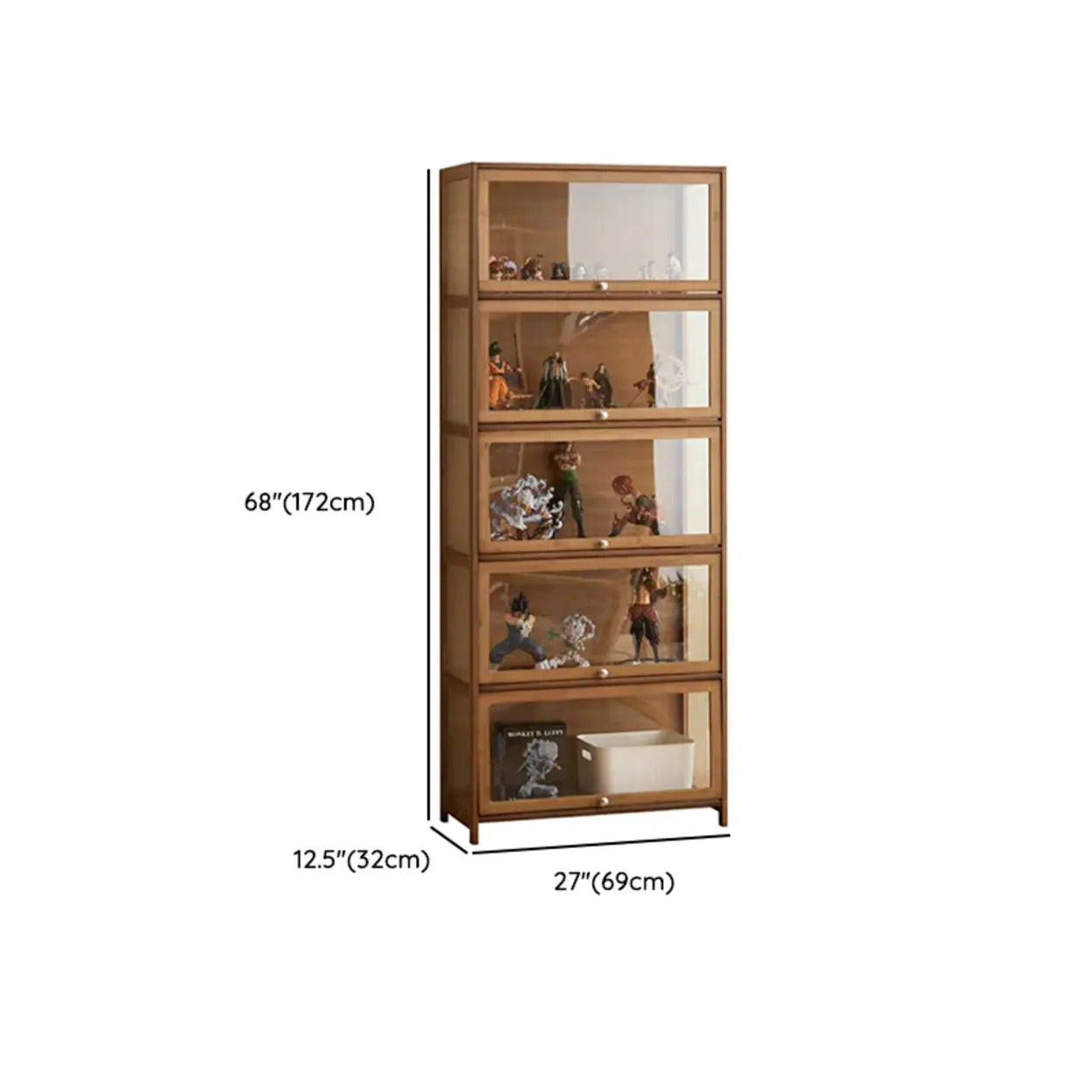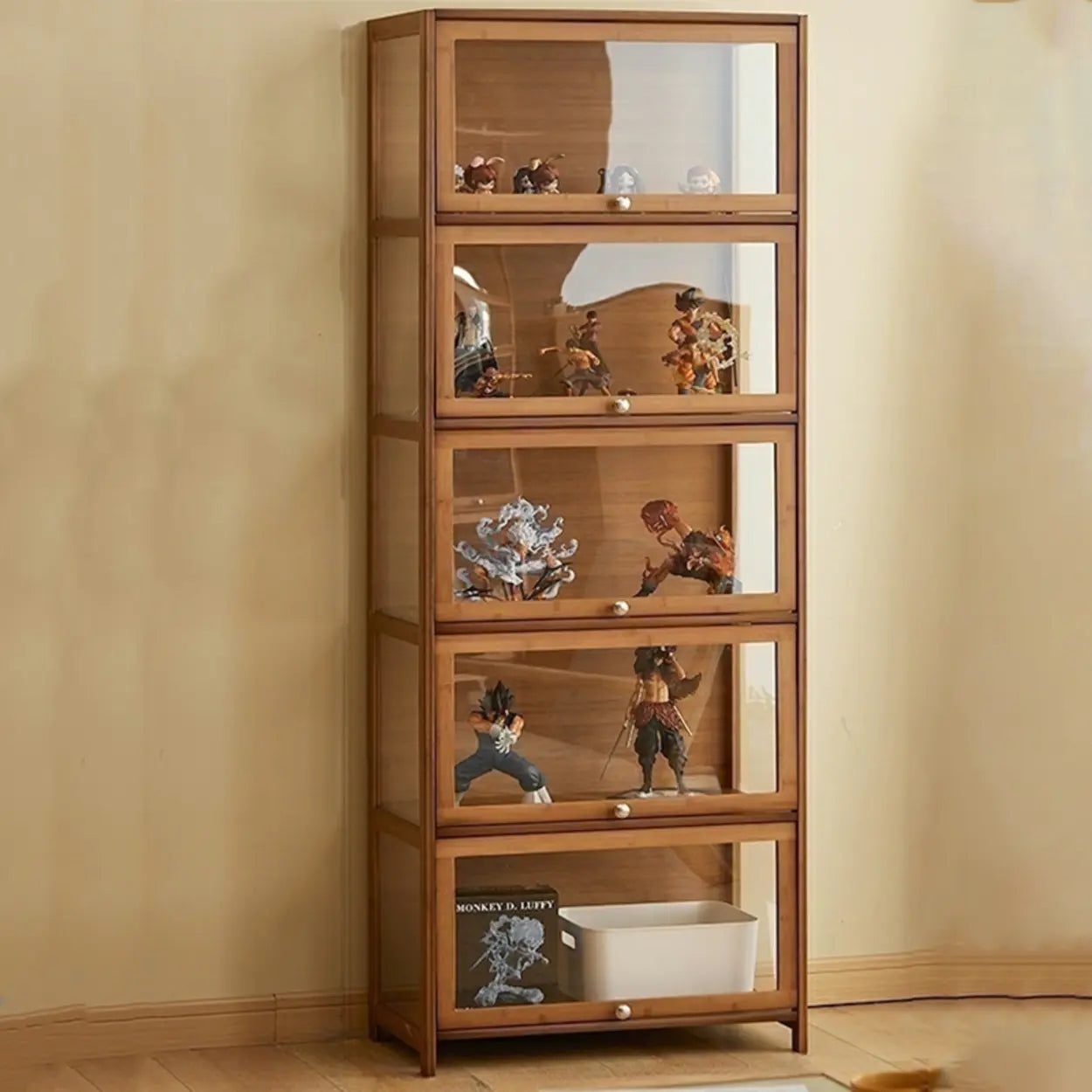 Brown Tall Bamboo Living Room Clear Display Cabinet
