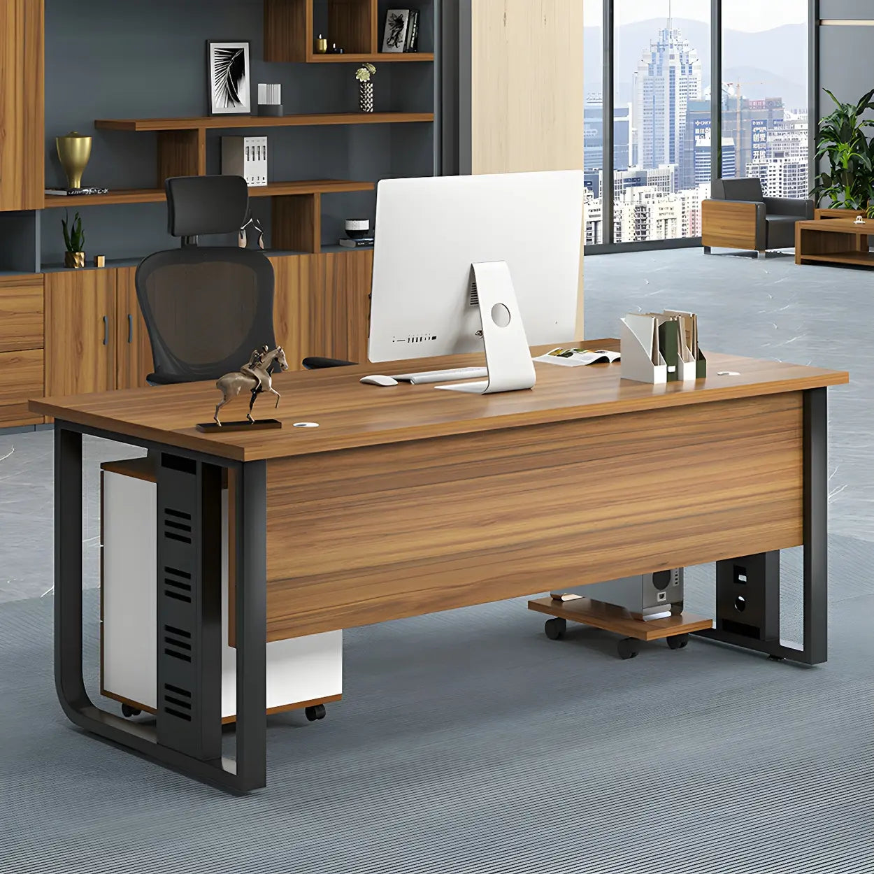 Brown Wood Drawers Storage Steel Sled Computer Desk