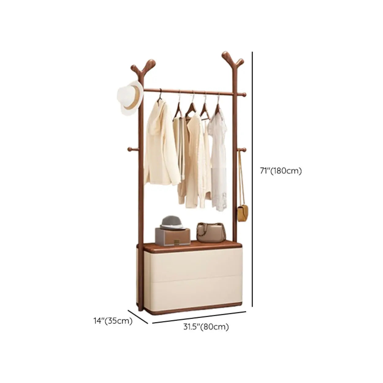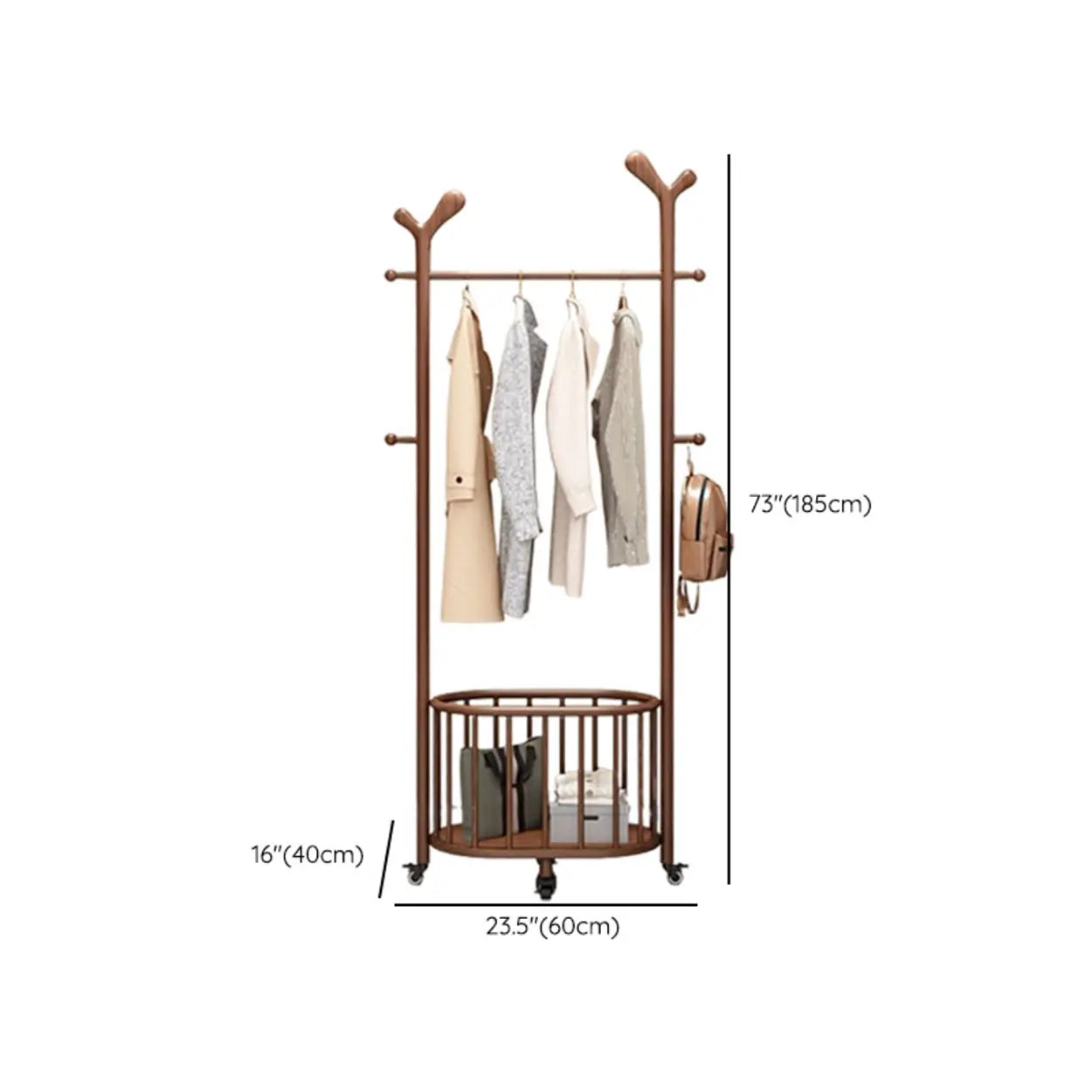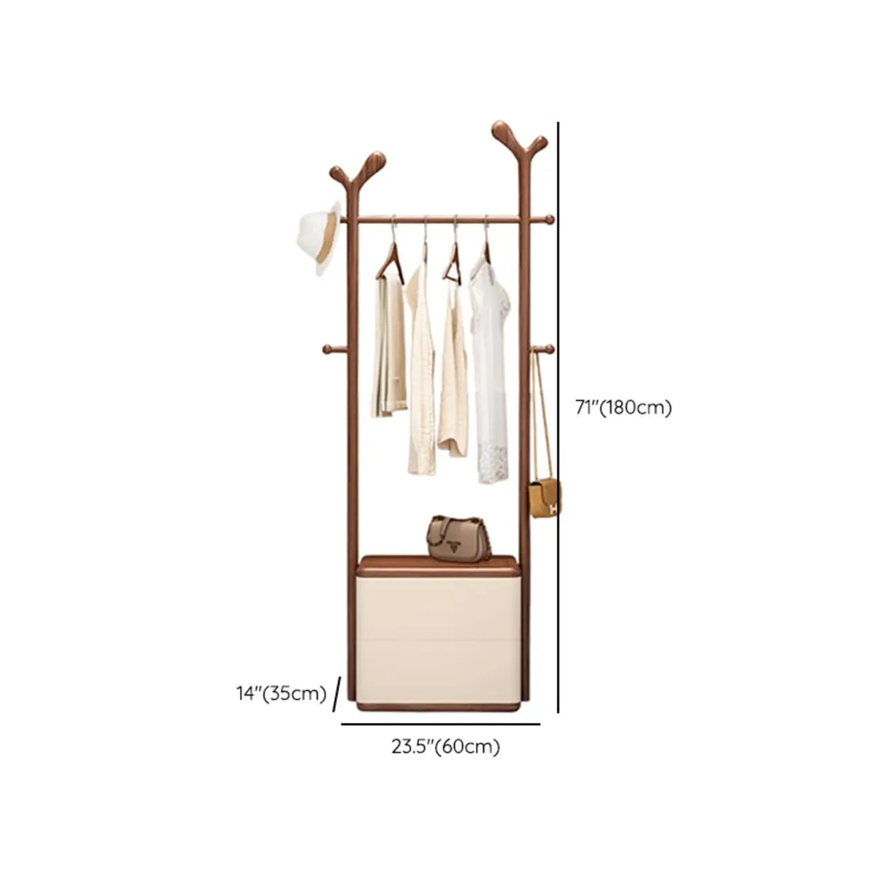 Brown Wood Freestanding Open Storage Hooks Coat Rack