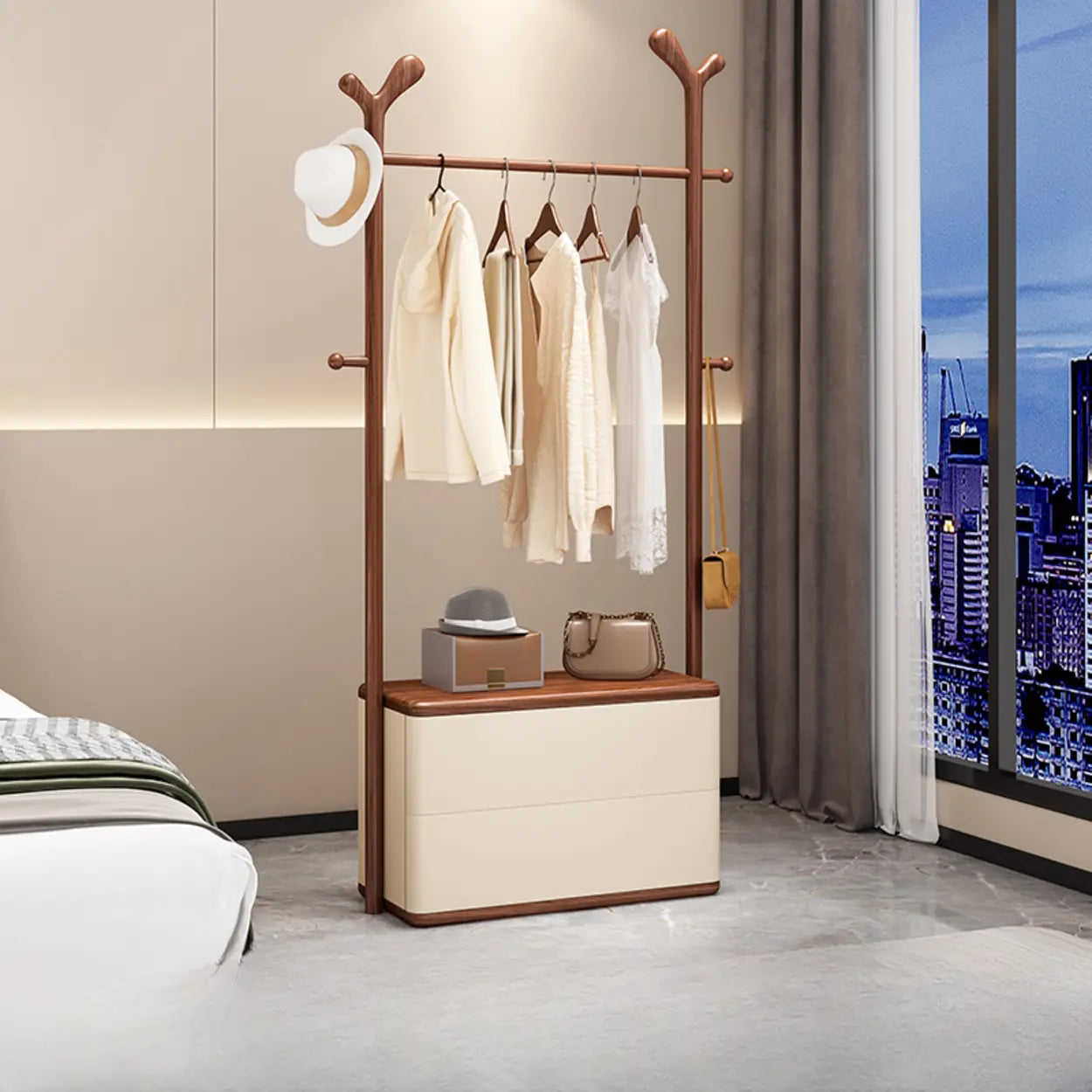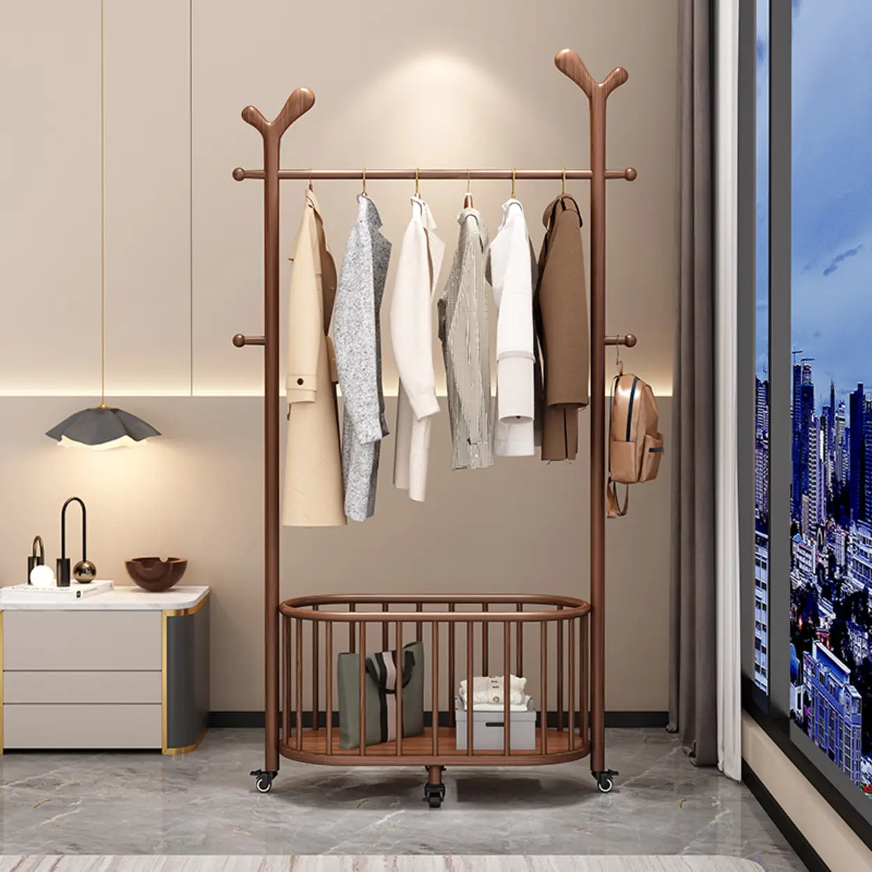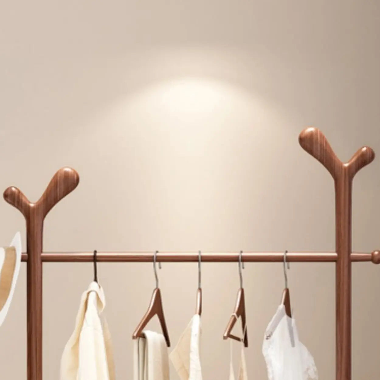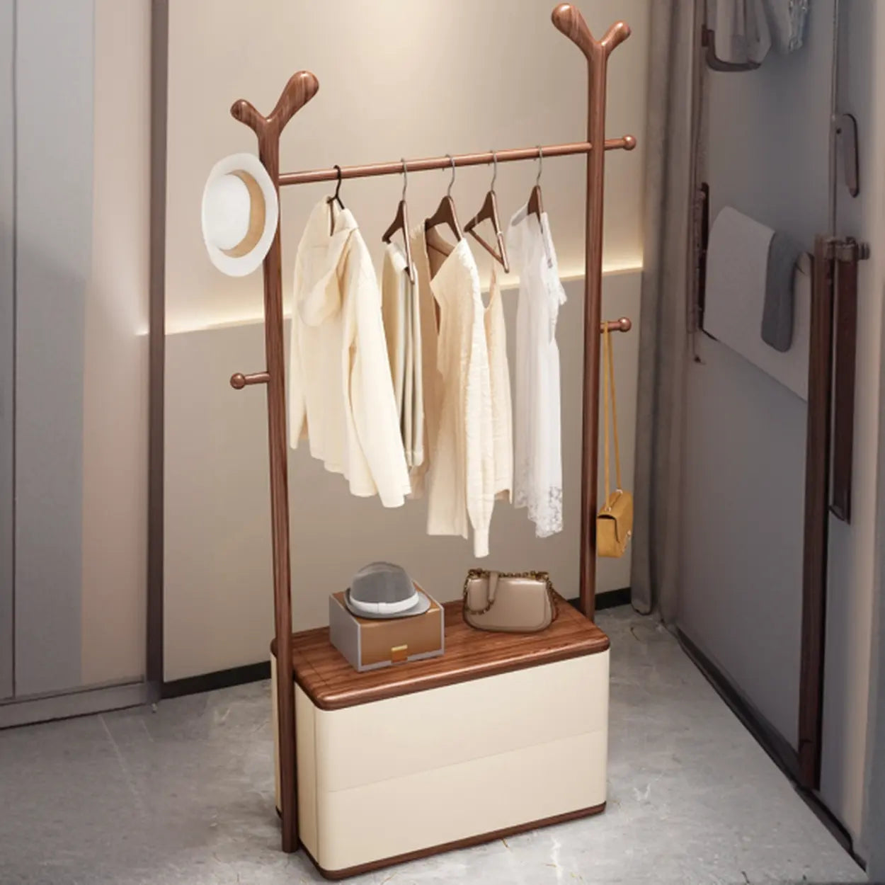 Brown Wood Freestanding Open Storage Hooks Coat Rack