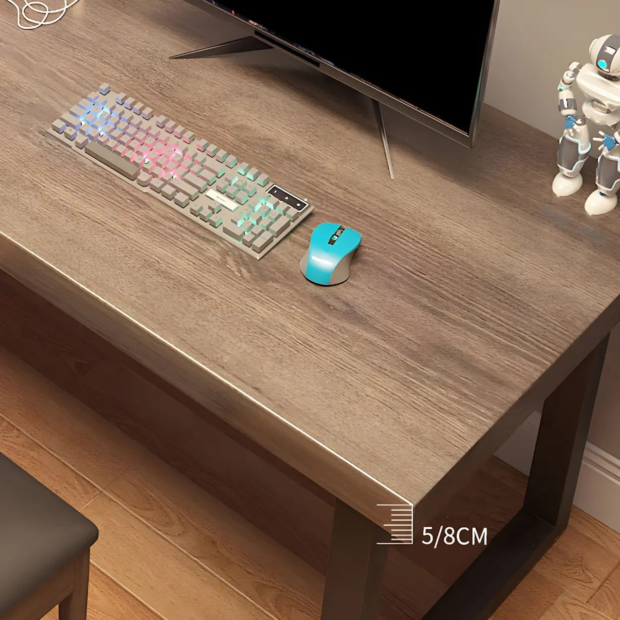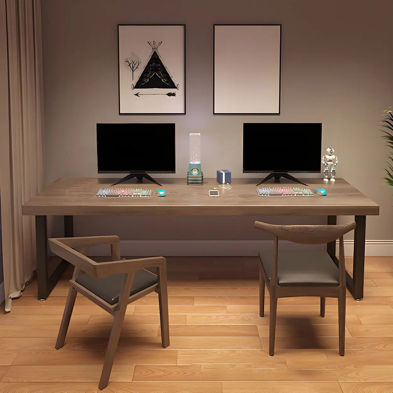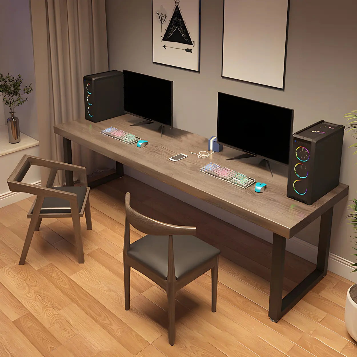 Brown Wood Rectangle Iron Sled Double Gaming Desk