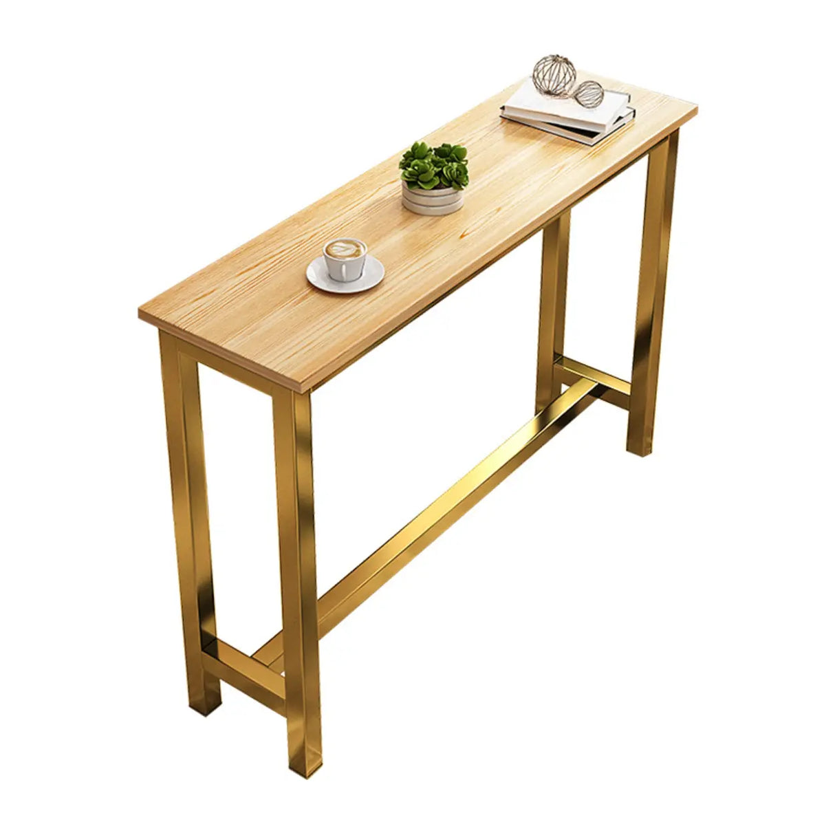 This natural color rectangular wood bar table offers a simple yet luxurious visual appeal, making it perfect for both home and commercial spaces. The exquisite natural wood grain seamlessly integrates with the black metal bracket, creating a strikingly modern and industrial style. This design complements modern, minimalist interiors or adds an industrial retro charm. Whether for a small gathering with friends or leisure time alone, this table is versatile enough to meet your needs.