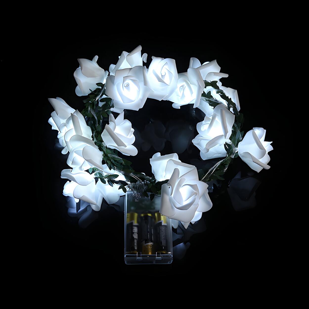 This rose-shaped LED light string strengthens a touch of romance and elegance to your wedding, holiday or home decoration. The bulb is decorated with delicate fabric roses, emitting soft white light to create a warm atmosphere. Supports USB and battery power supply, suitable for flexible use in various scenarios.