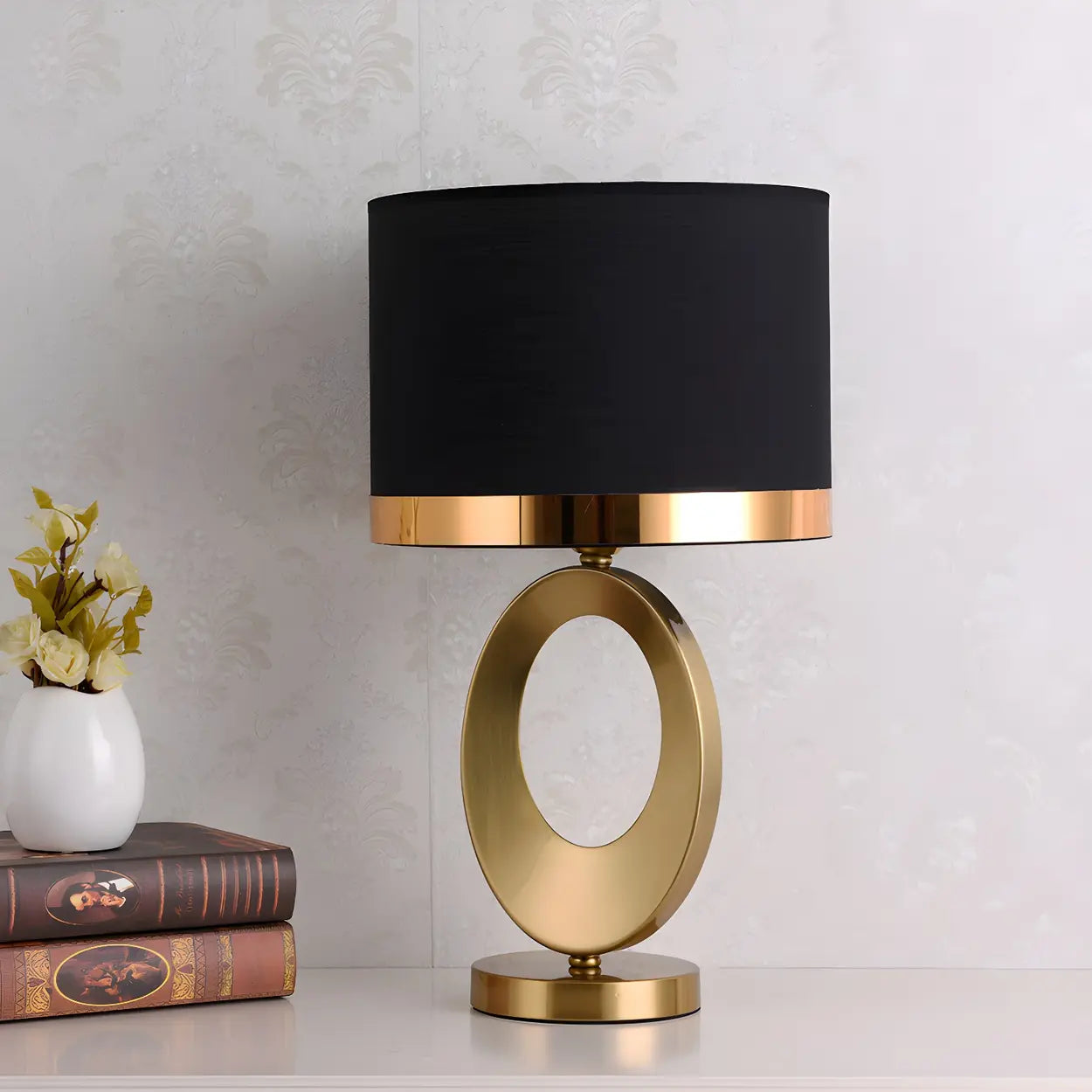 Classic Black Drum Fabric Oval Metal Base Table Lamp