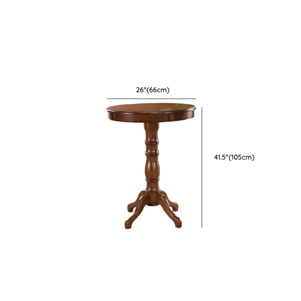 Classic Traditional Brown Wood Round Pedestal Bar Table - 26"L x 26"W x 41"H / Table Only is backordered and will ship as soon as it is back in stock.
