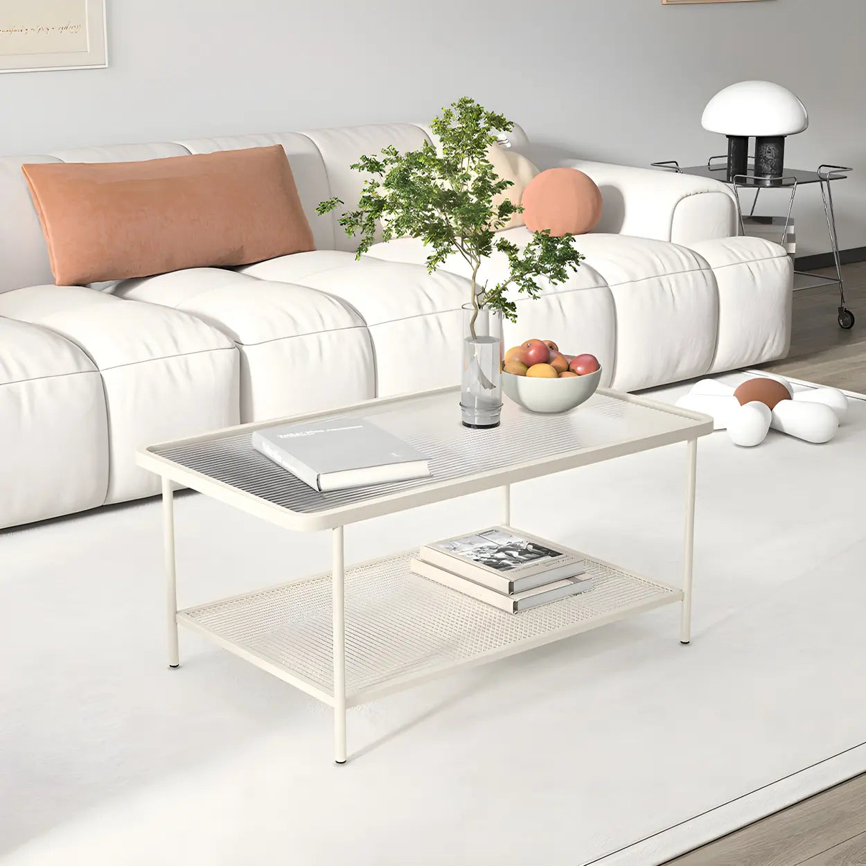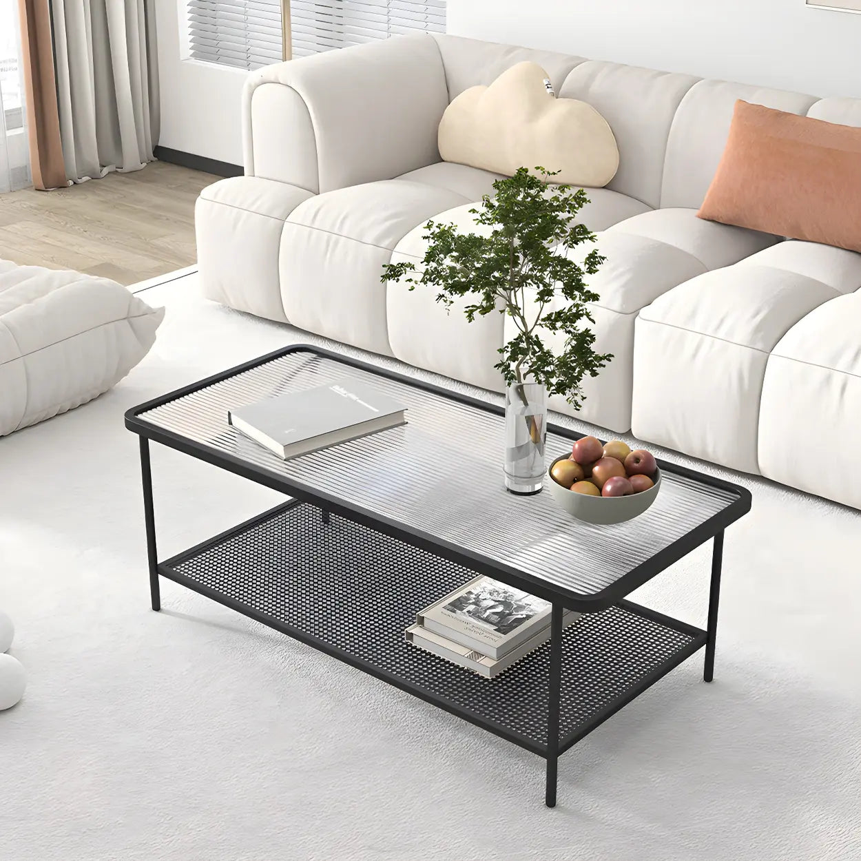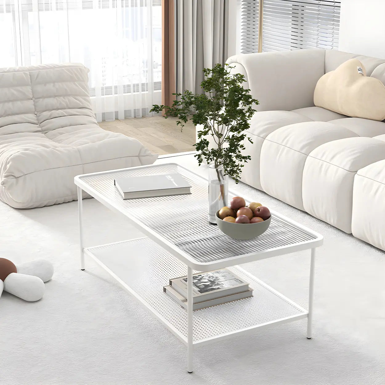 This rectangular coffee table features a simple design that fits perfectly into any home decor. The combination of tempered glass and metal frame not only adds visual transparency but also improves overall durability and safety. Presenting additional storage space for books, magazines, or other daily necessities, the lower shelf helps make your living room more tidy and organized.
