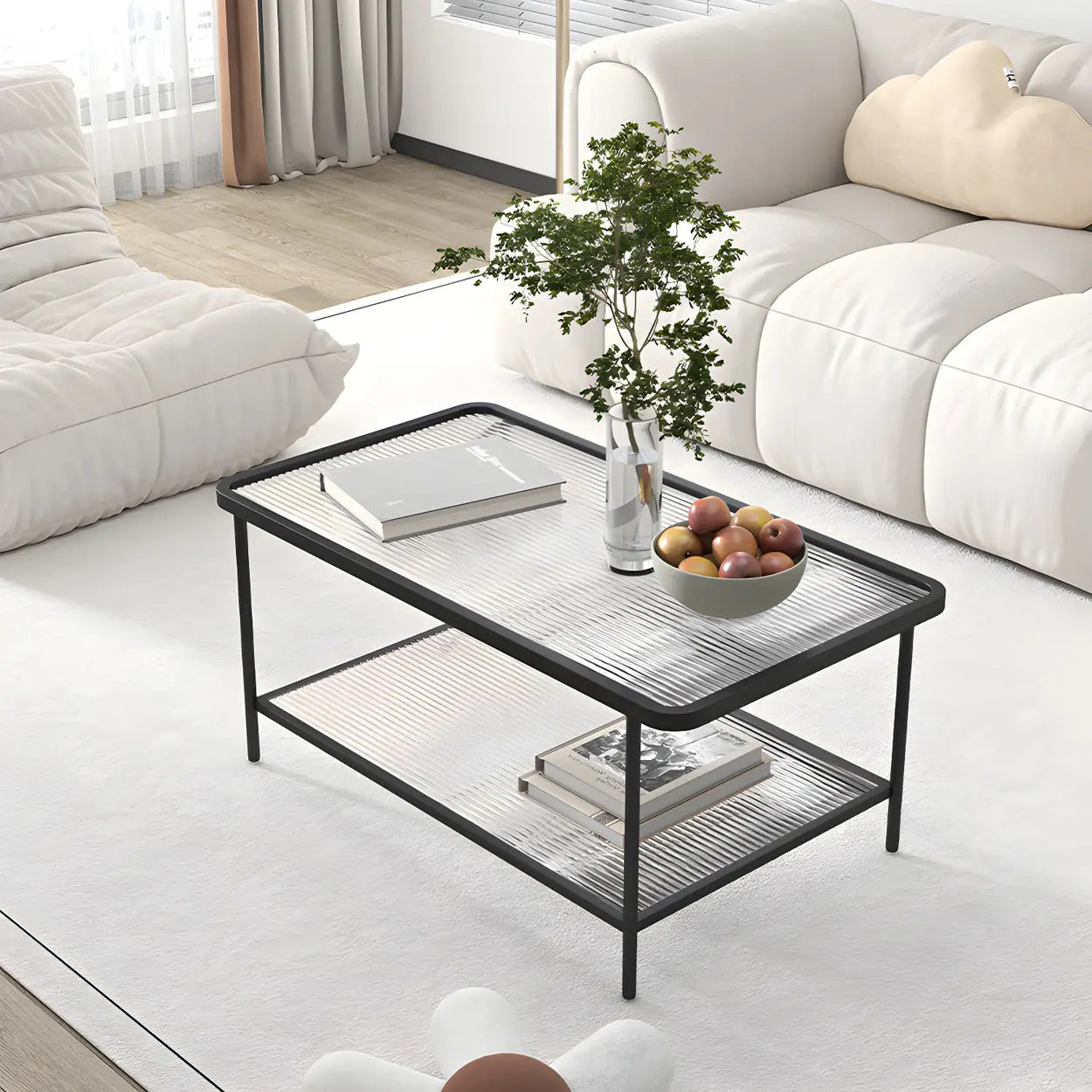 Clear Glass Shelves Scratch Resistant Coffee Table - 35.5"L x 20"W x 16"H / Black / Glass Shelf is backordered and will ship as soon as it is back in stock.