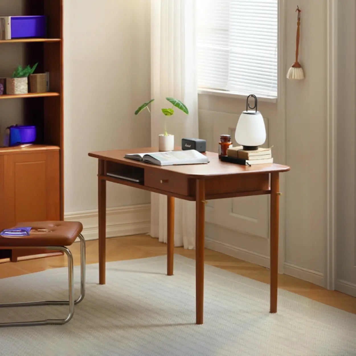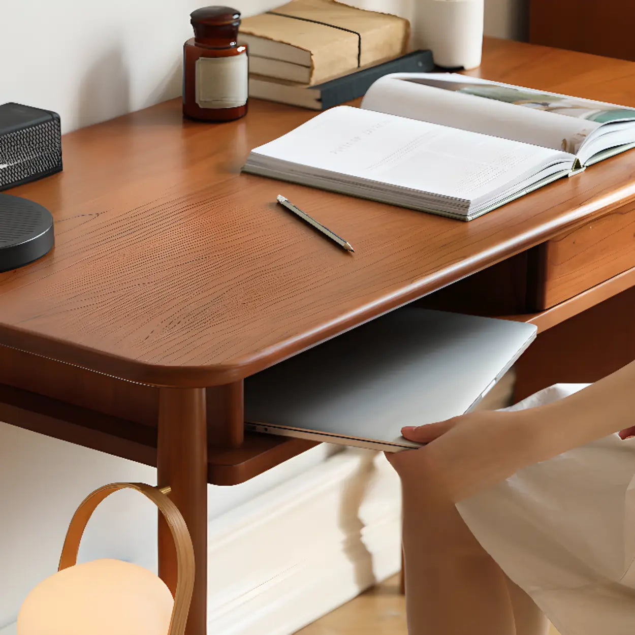 This desk merges modernity with practicality, it features a classic rectangular design and is made from high-quality cherry wood in a warm chestnut color. It's ideal for a home office or study. It is as attractive as it is functional, containing multiple external storage and useful drawers to make the compact space. This is an ideal furniture to invest in. The robust cherry wood ensures that it will provide lasting support and comfort for your daily use. You will enjoy a comfortable and focused work environment with this desk. It is capable of working, studying, or creating, and will make every task more efficient and enjoyable.