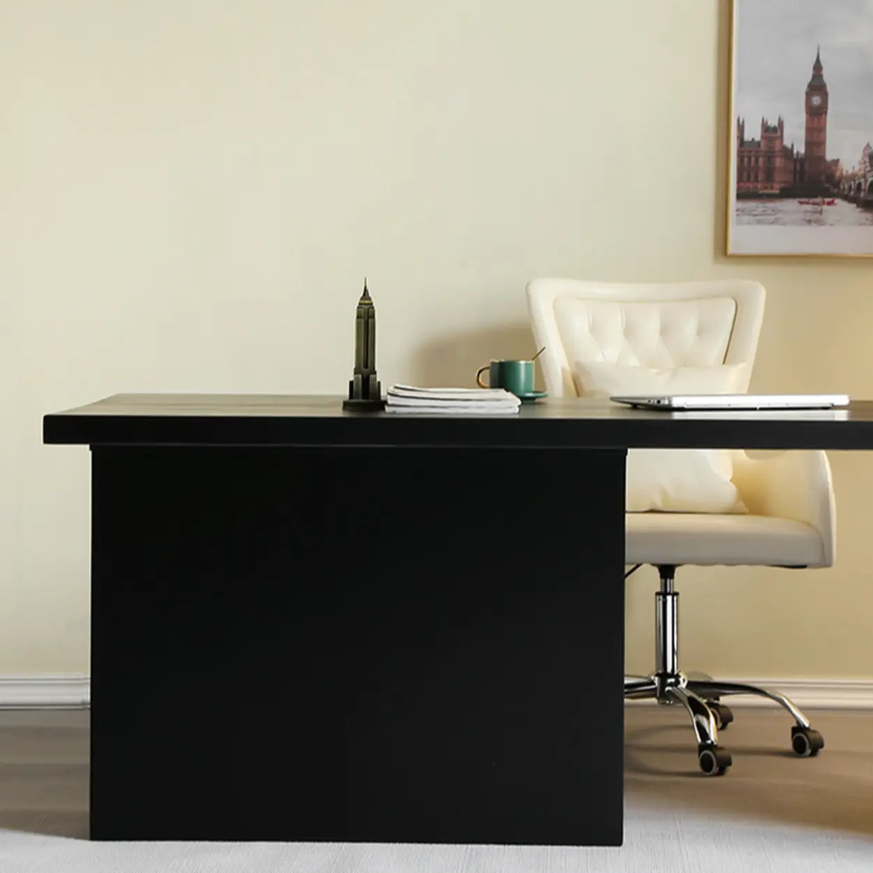 This black desk has a simple and elegant design, perfect for office space. Its rectangular design combines exquisite ink color and high-grade wood tabletop to present a spacious work area and natural beauty. Whether it is writing, reading, or computer work, this desk can easily do the job.