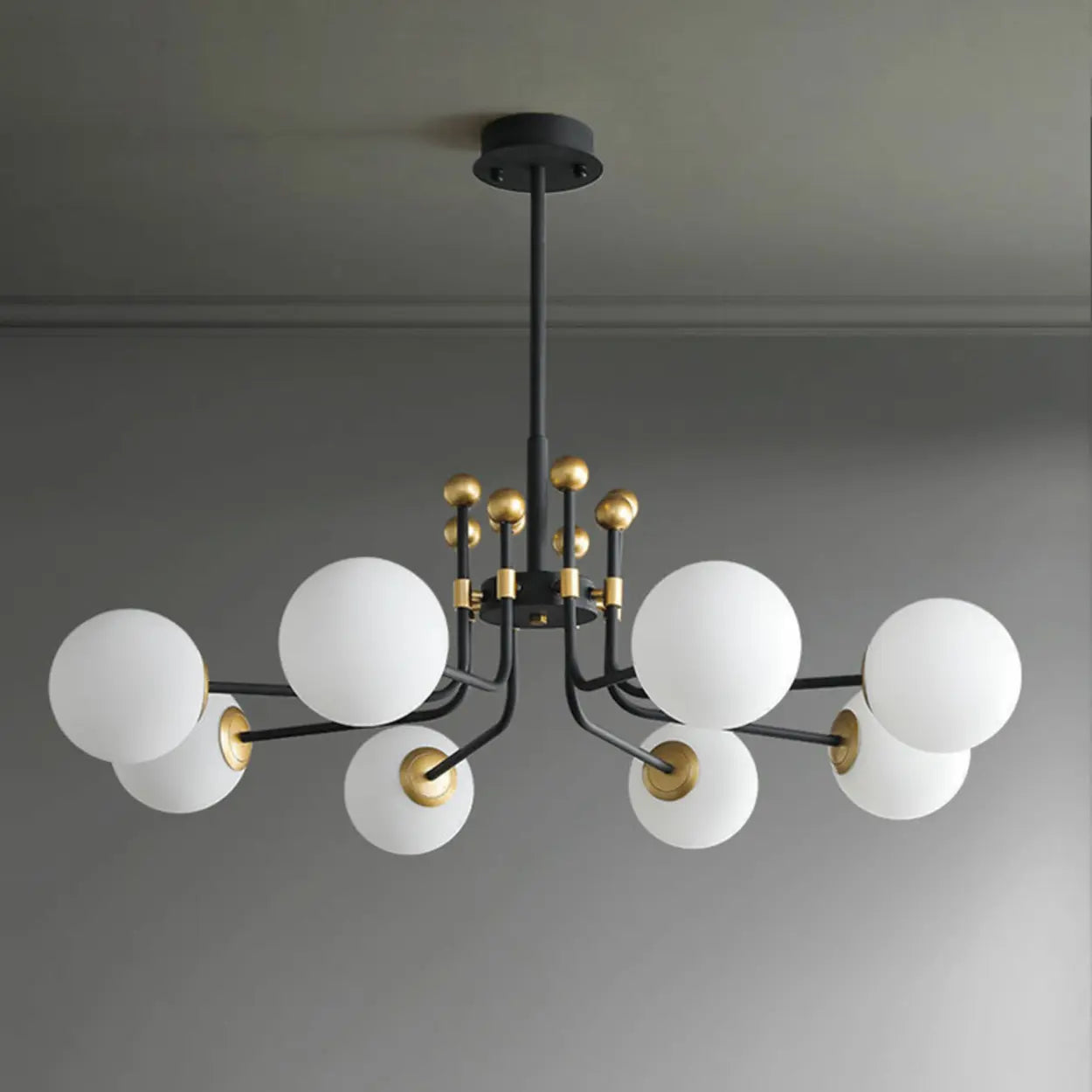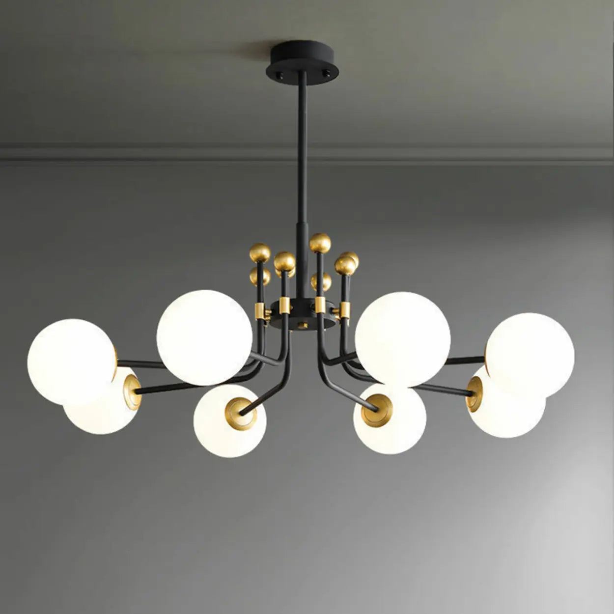Contemporary Globe Glass Living Room Black Gold Chandelier