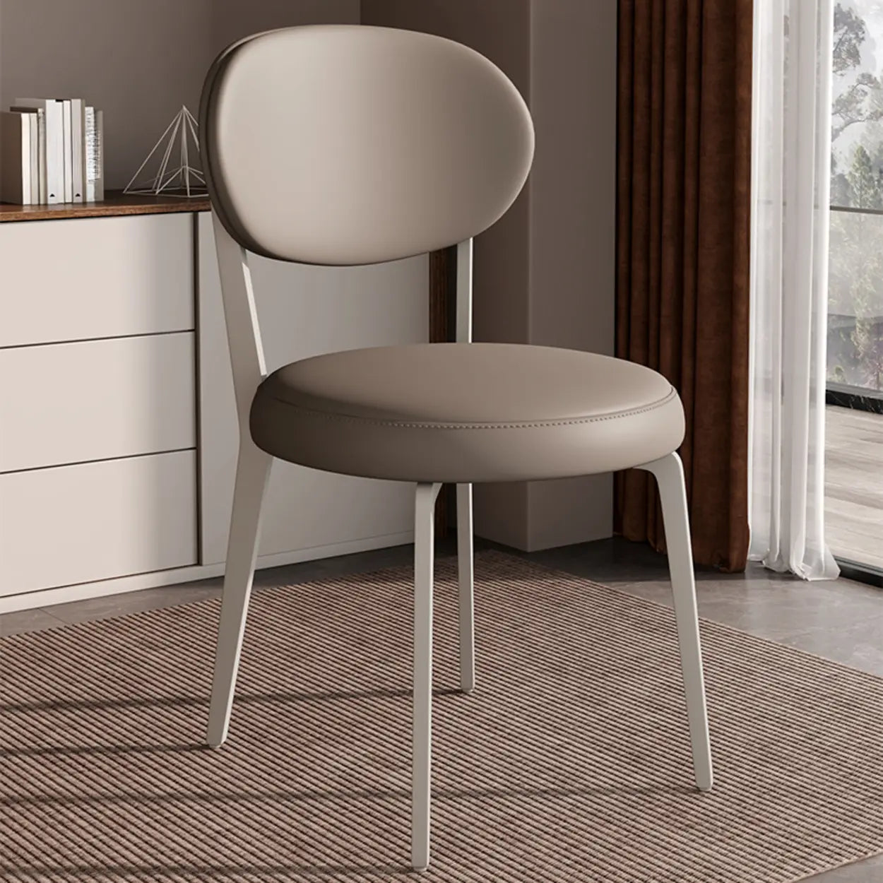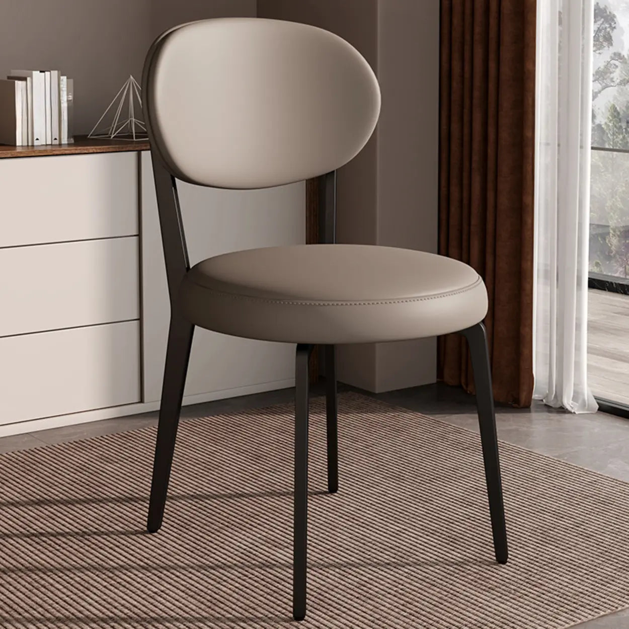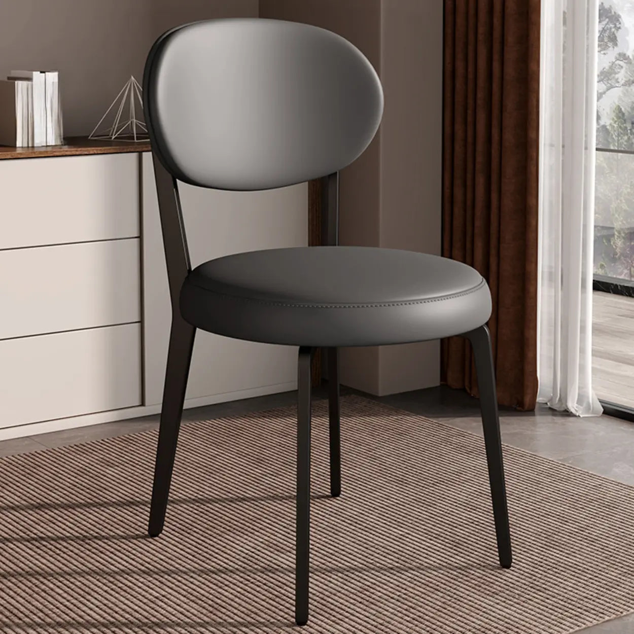 This chair offers reliable seating for dining, living, or office spaces. The soft leather cushions and sturdy metal legs provide practical comfort and contemporary style without being flashy or overdone.