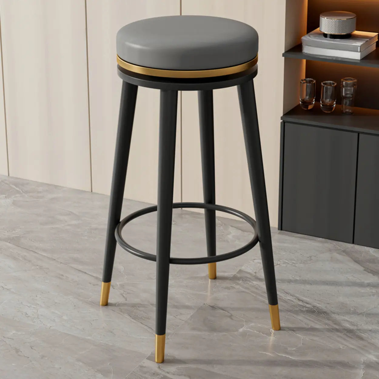 Contemporary Metal Frame Round Bar Stool with Padded Seat