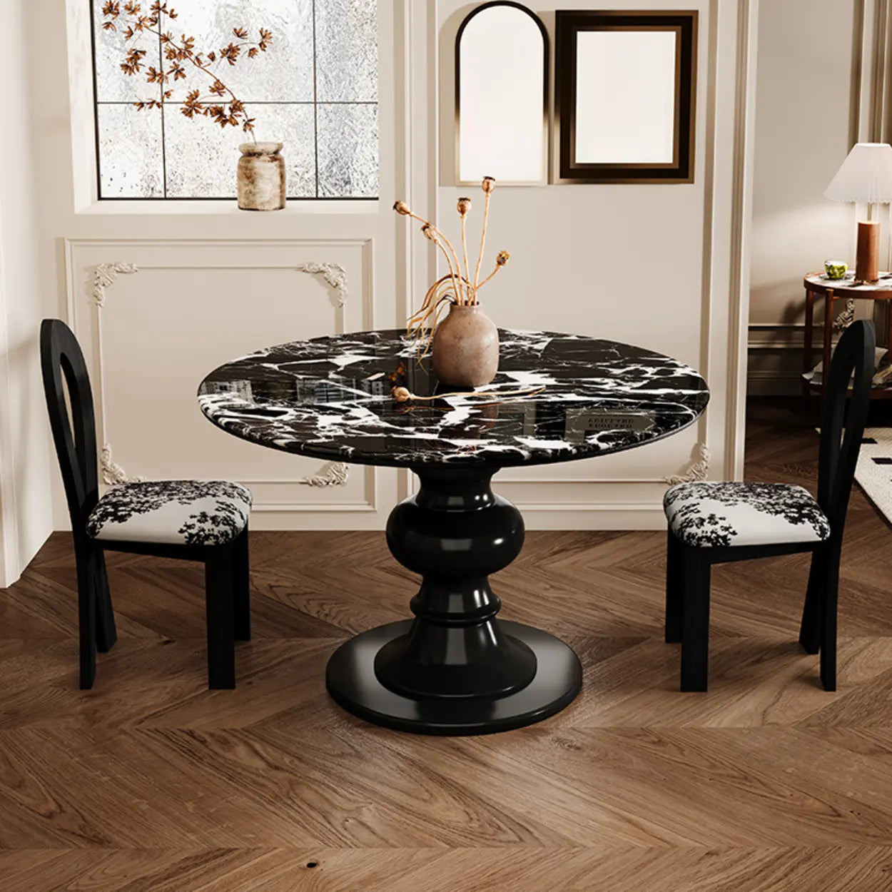 This round black dining table delivers a refined look to any dining area. The sturdy pedestal base adds a touch of classic design while providing practical stability for everyday meals or gatherings.