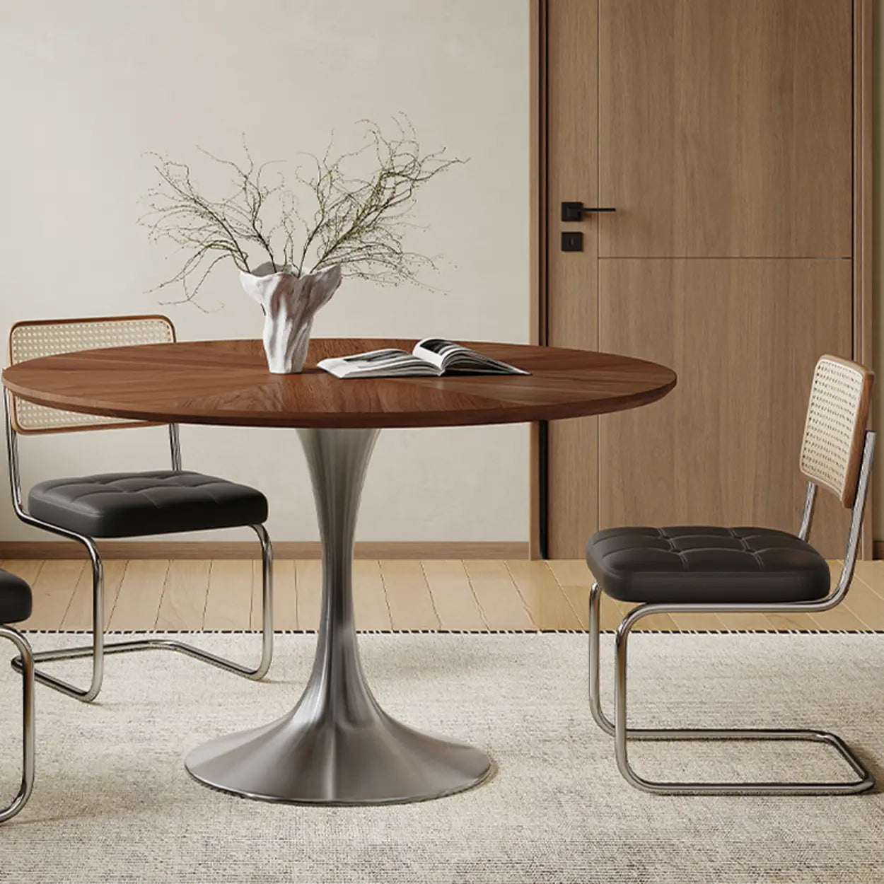 Contemporary Small Metal Base Round Brown Wood Dining Table