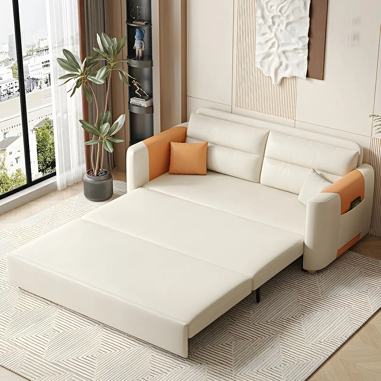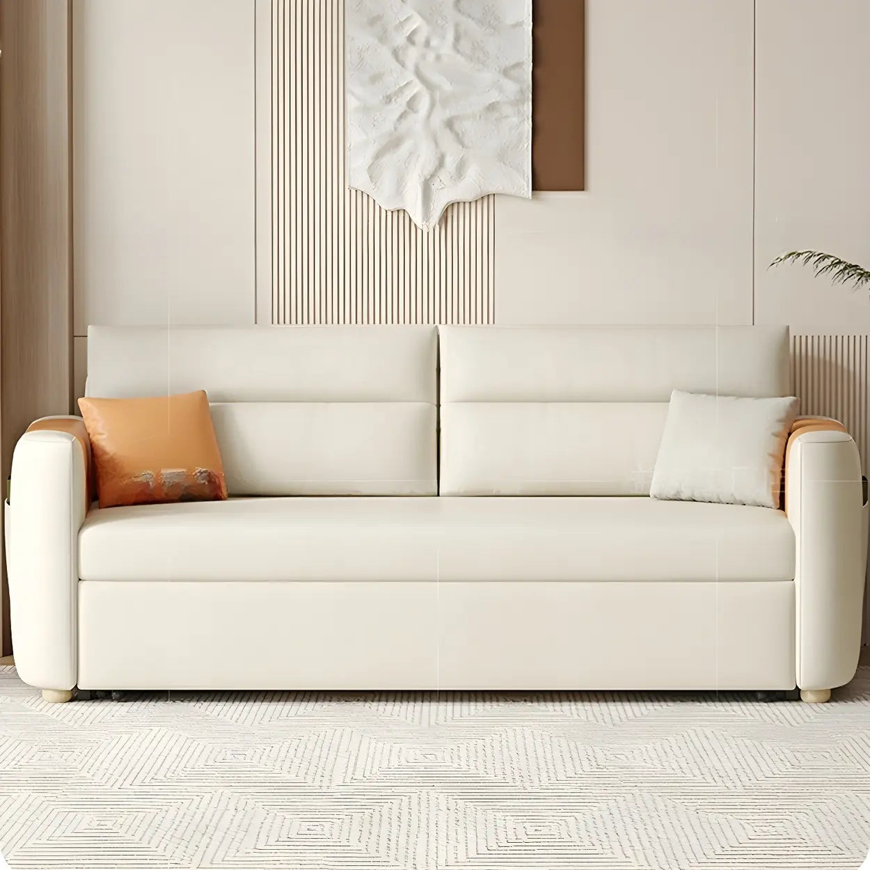 Convertible Square Arm Faux Leather Off-White Sleeper Sofa