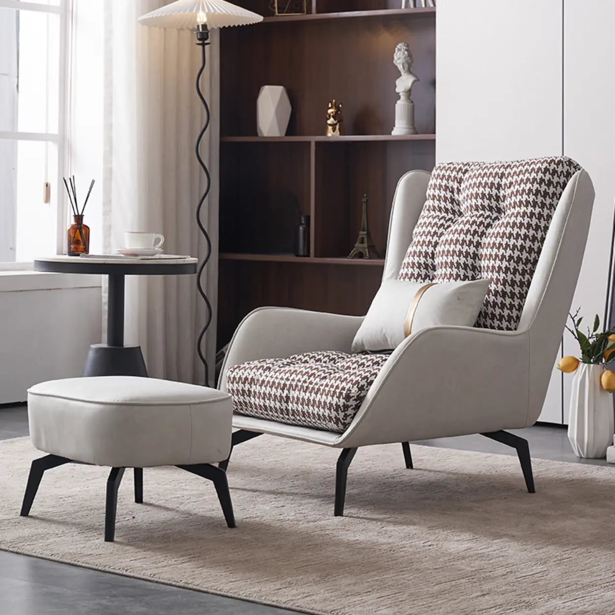 Cotton Linen Biscuit Back Flared Arm Tufted Accent Chair - Beige Houndstooth / Accent Chair / Cotton and Linen is backordered and will ship as soon as it is back in stock.