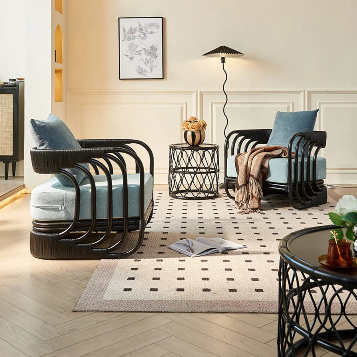 This elegant black rattan lounge chair adds a modern touch to your living room, simple and sophisticated. Its unique curved design combined with comfortable cushions allows you to enjoy a comfortable leisure time while elevating the visual beauty of the space.