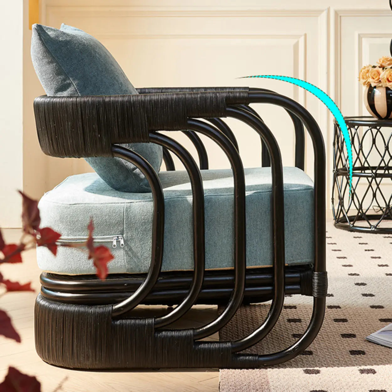 Cotton Linen Wicker Rattan Square Arm Accent Chair