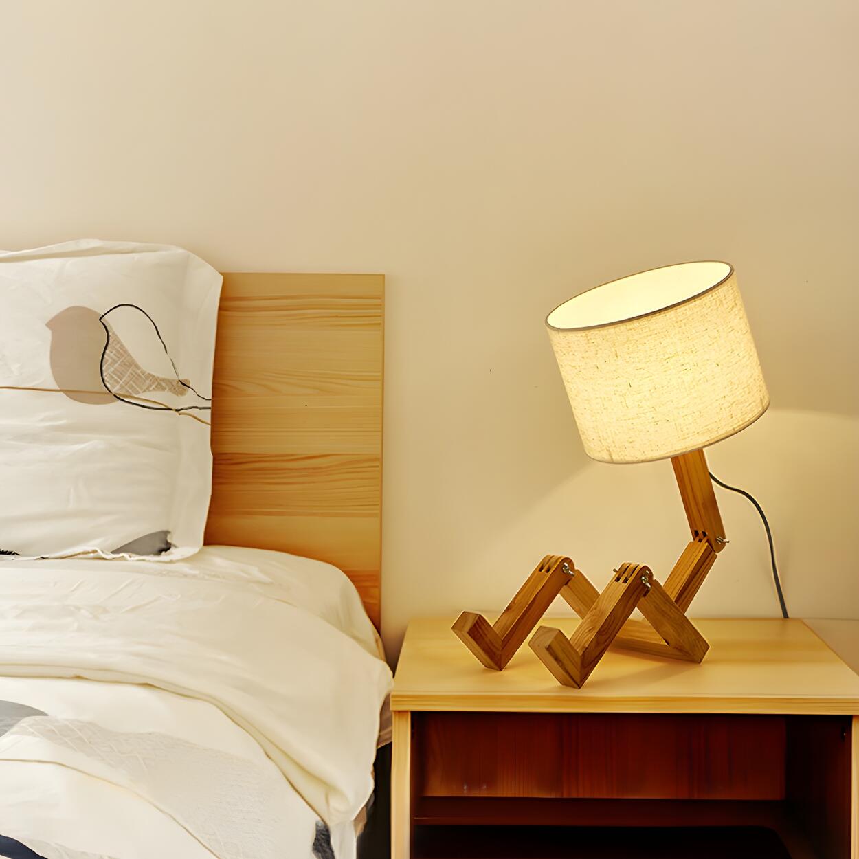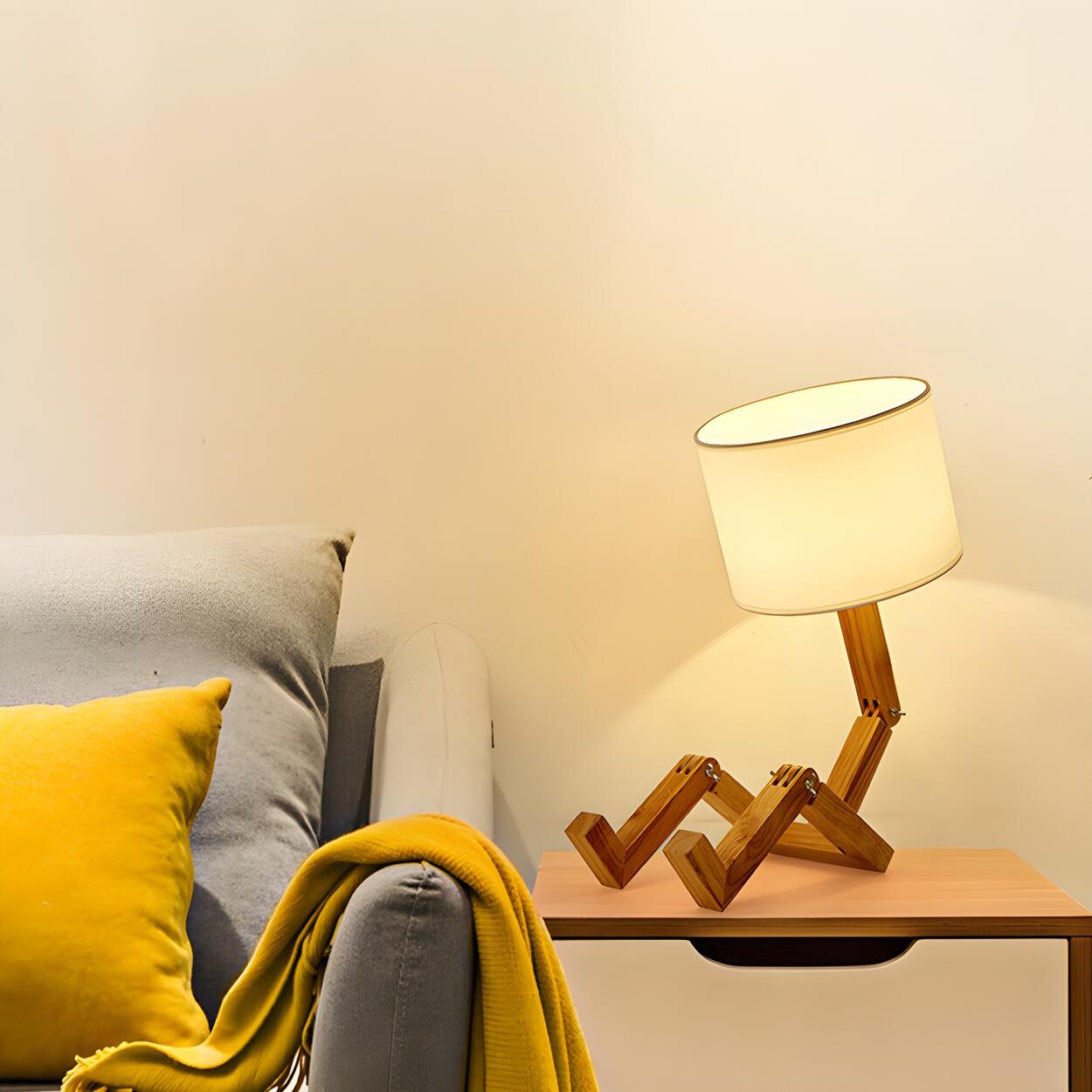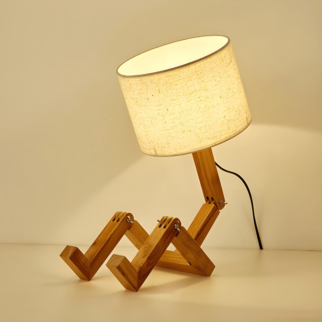 Creative Barrel Fabric Shade Wooden Robot Table Lamp