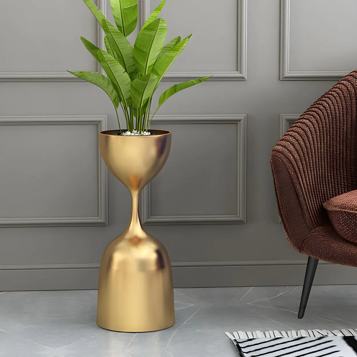 Creative Hourglass Iron Gold and Blue Plant Stand Set