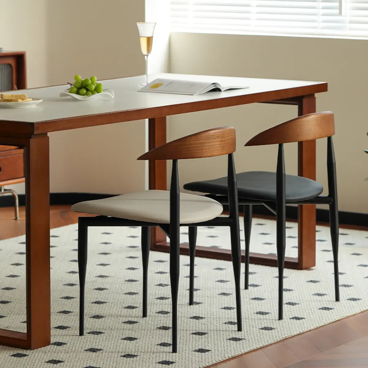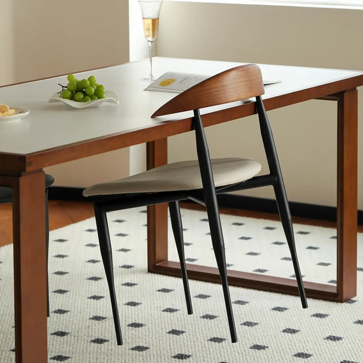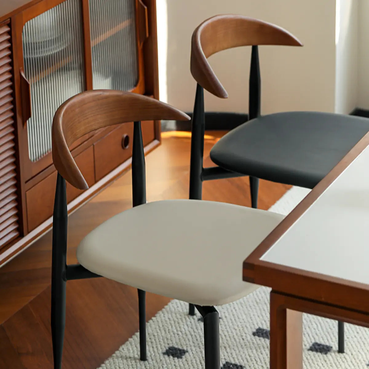 Curved Low Back Faux Leather Metal Dining Chair Black
