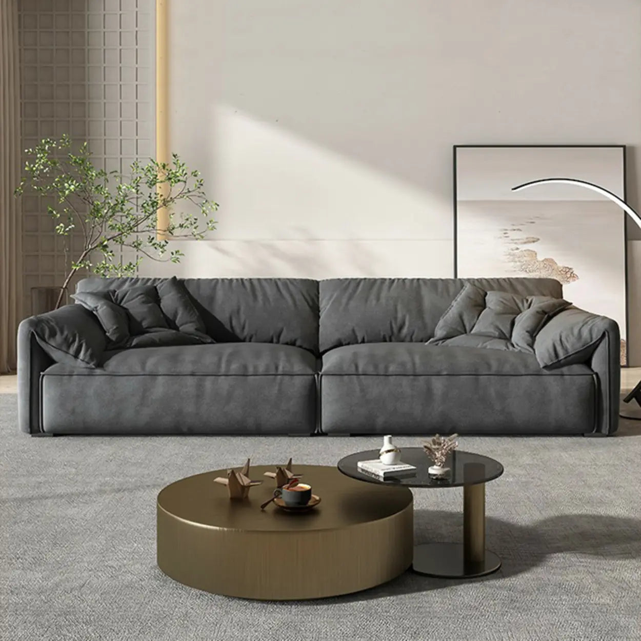 Dark Gray Abrasive Cloth Pillow Back 4 Seats Sofa
