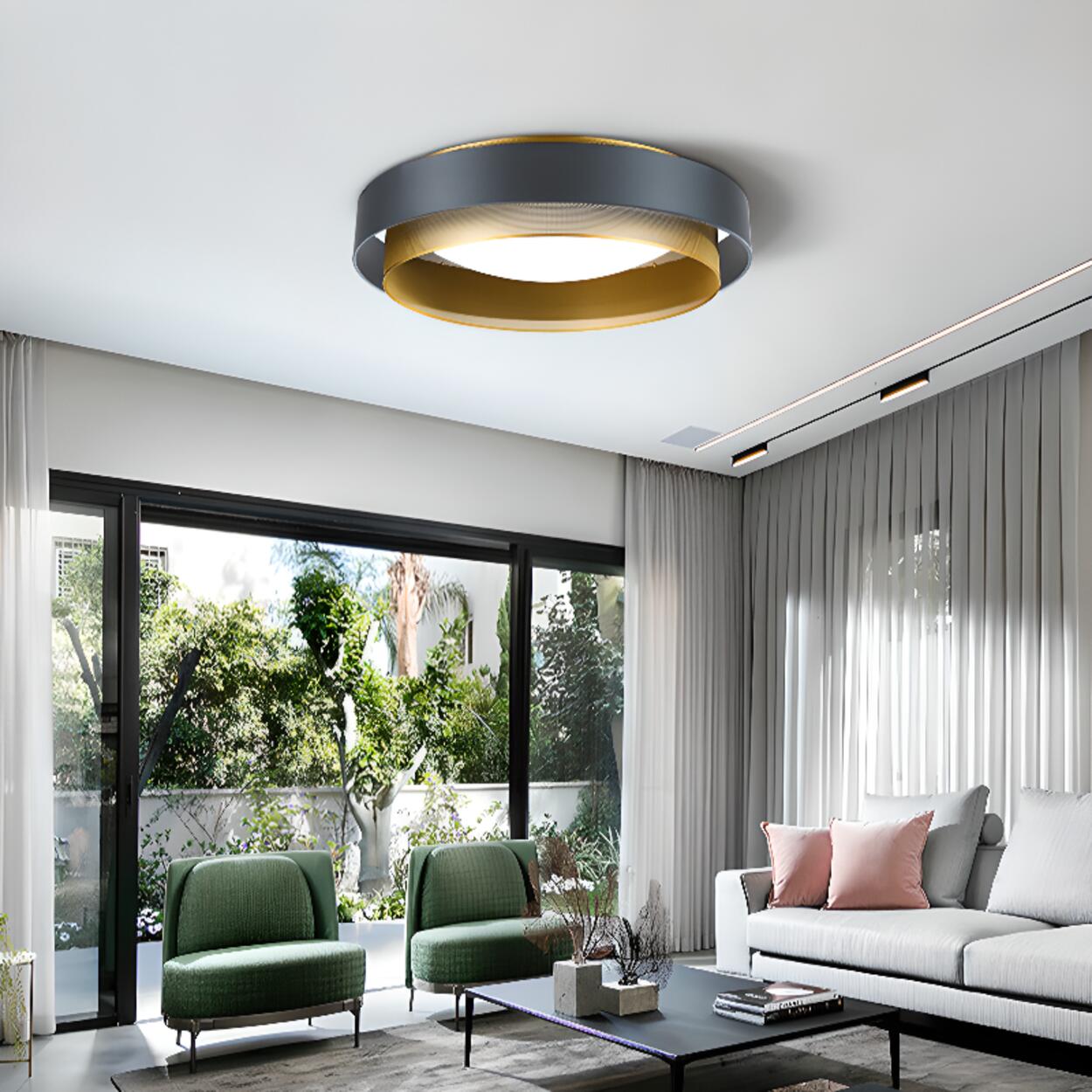 - This double-layer circle lamp features a unique art deco design, adding elegance and modernity to your home.