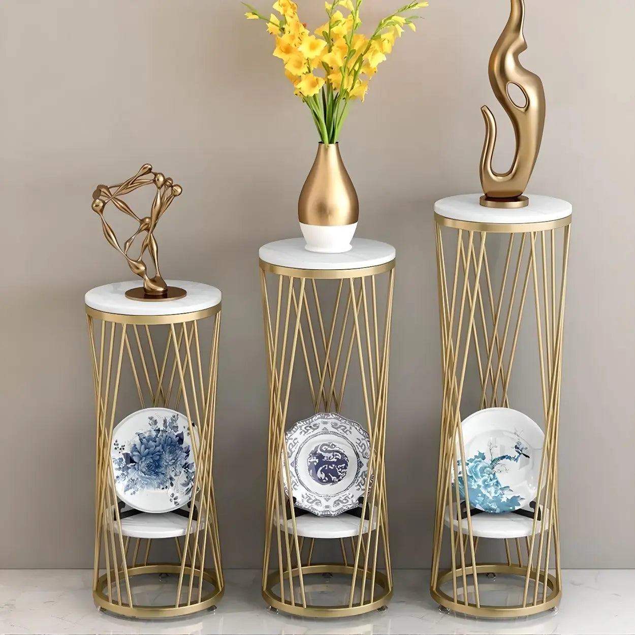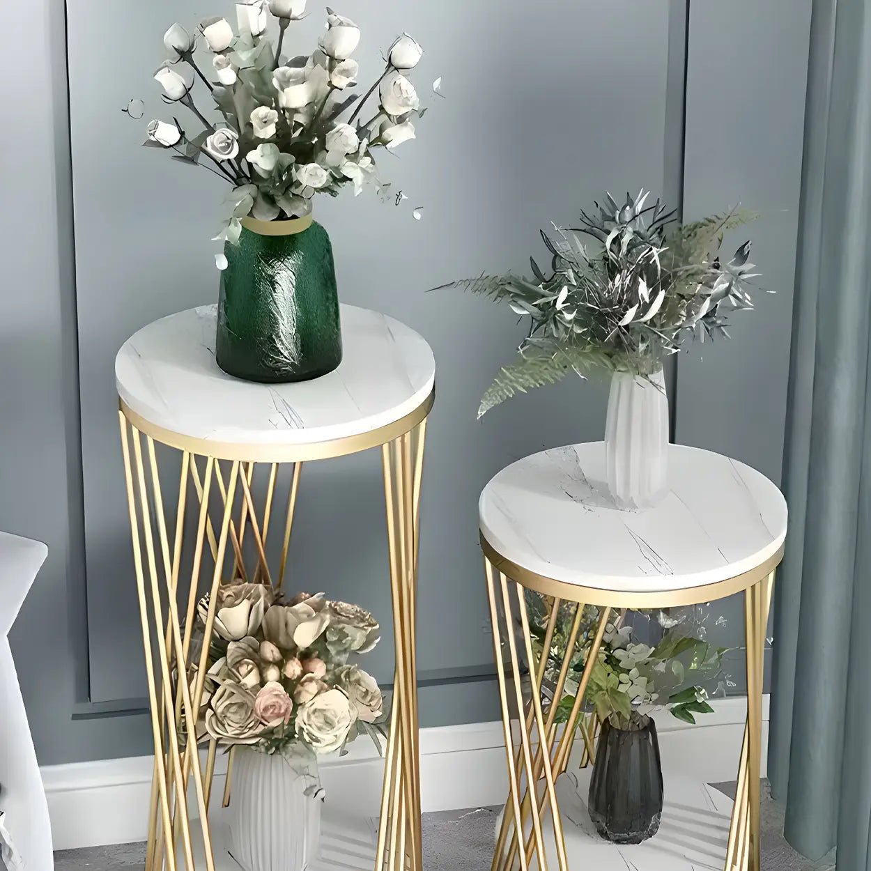 This modern-style flower stand, combining the perfect design of high-grade imitation marble and gold metal, is an ideal choice for your living room or bedroom. It is a great choice for displaying potted plants and heightens a touch of elegance to your home.