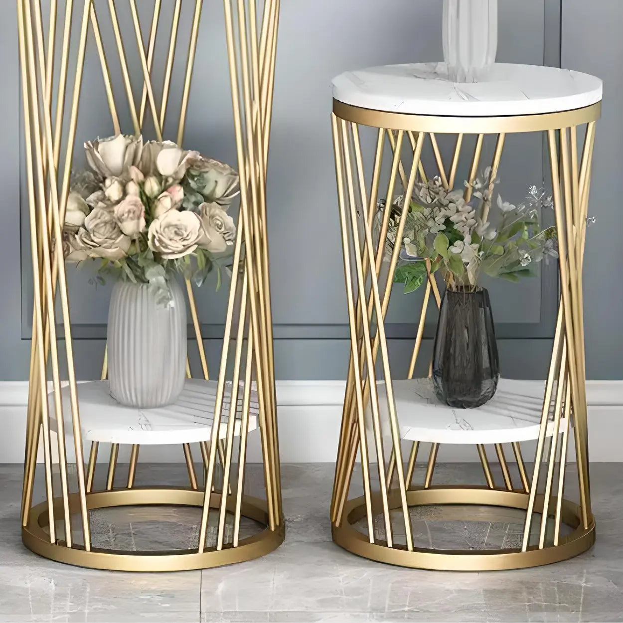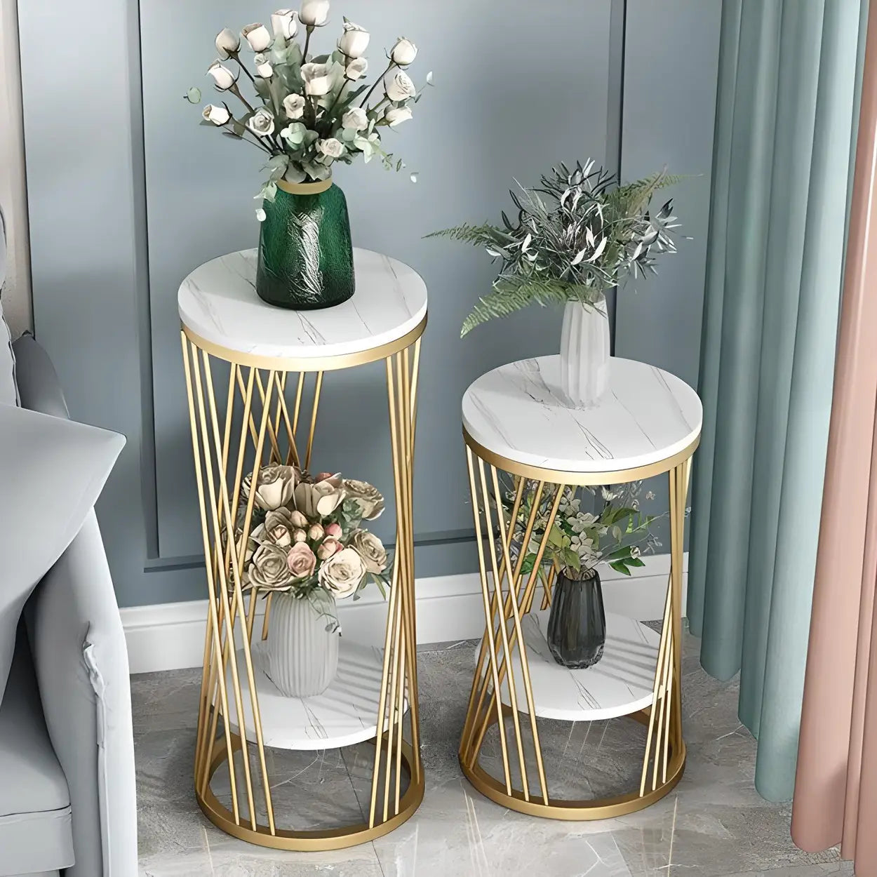 Display Round Gold Faux Marble 2 Tiers Plant Stand