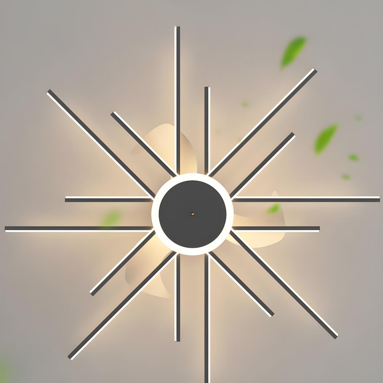 - This modern starburst ceiling fan light is ideal for multiple indoor spaces such as living rooms, dining rooms, and bedrooms. It is both decorative and practical.