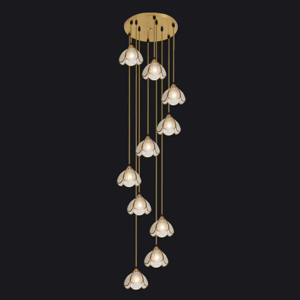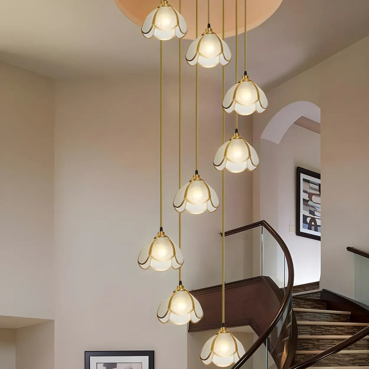 Elegant Clear Glass Flower Spiral Stairwell Pendant Light