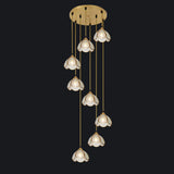 This flower-shaped pendant light showcases an elegant gold design and features 8 independent lamp heads, creating a warm and sophisticated atmosphere. It suits dining rooms, living rooms, and bedrooms, providing soft LED lighting effects that are both stylish and practical. The height of the pendant light can be adjusted according to the needs of the space, perfectly adapting to various interior decoration styles.