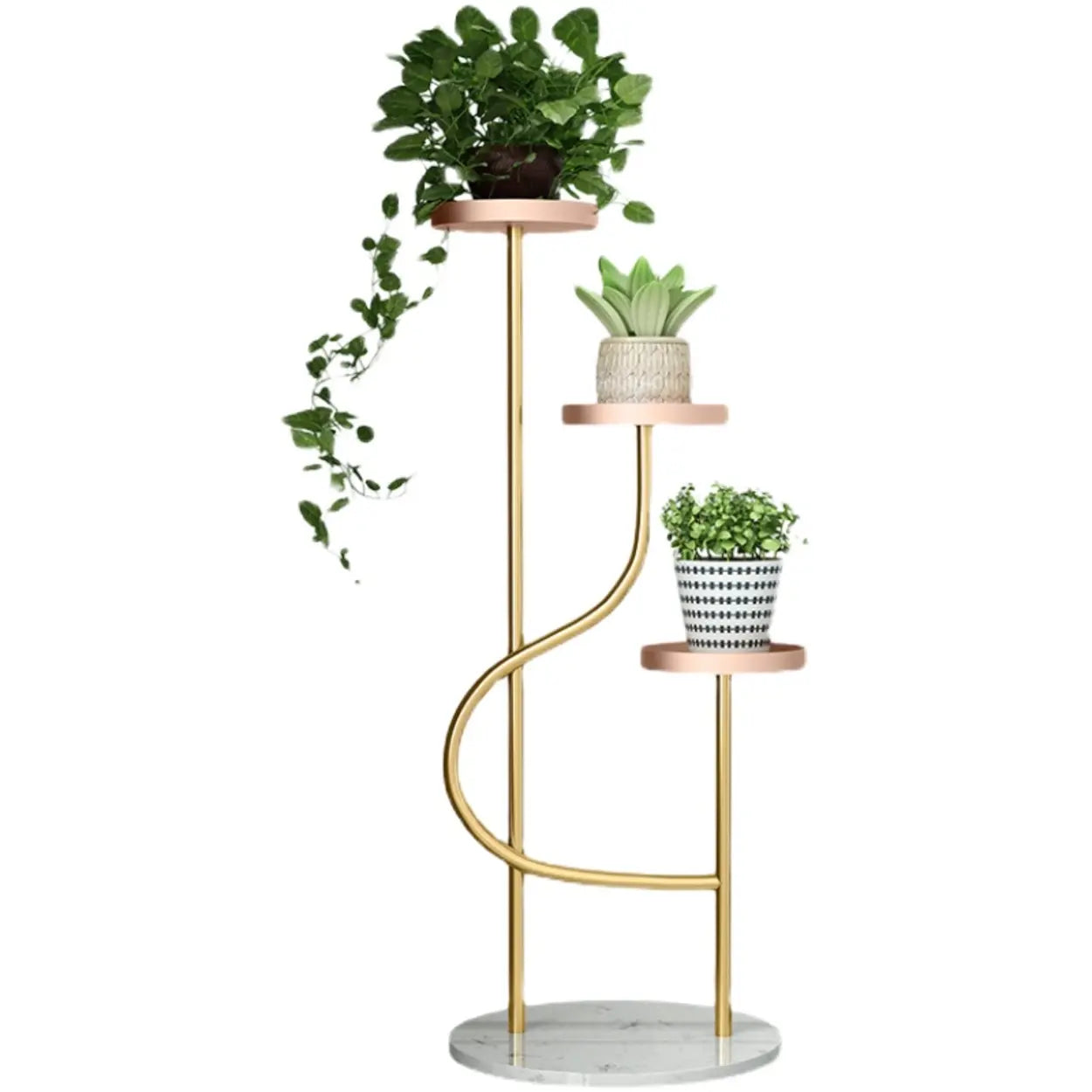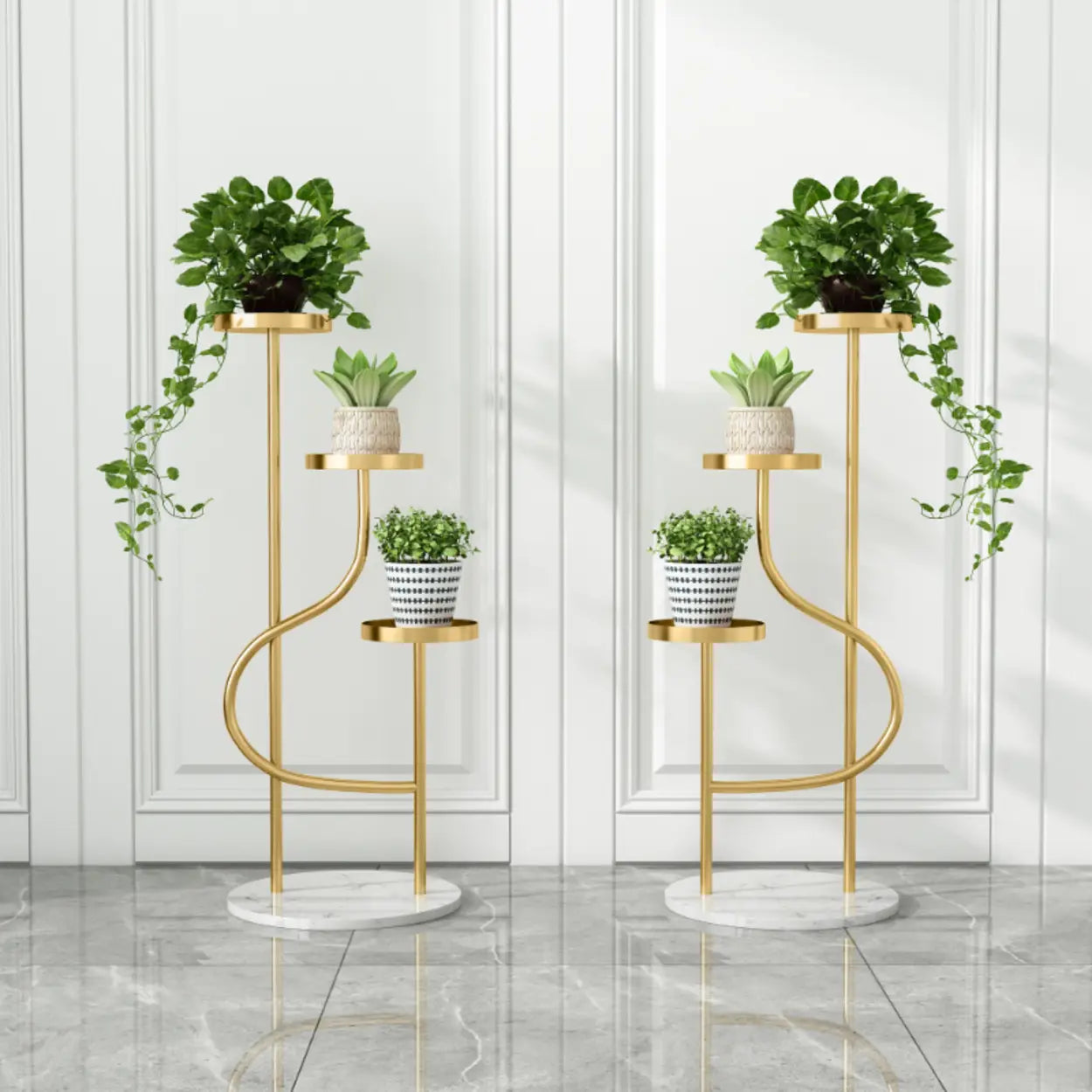 Elegant Curved Metal 3-Tier Indoor Plant Stand Gold