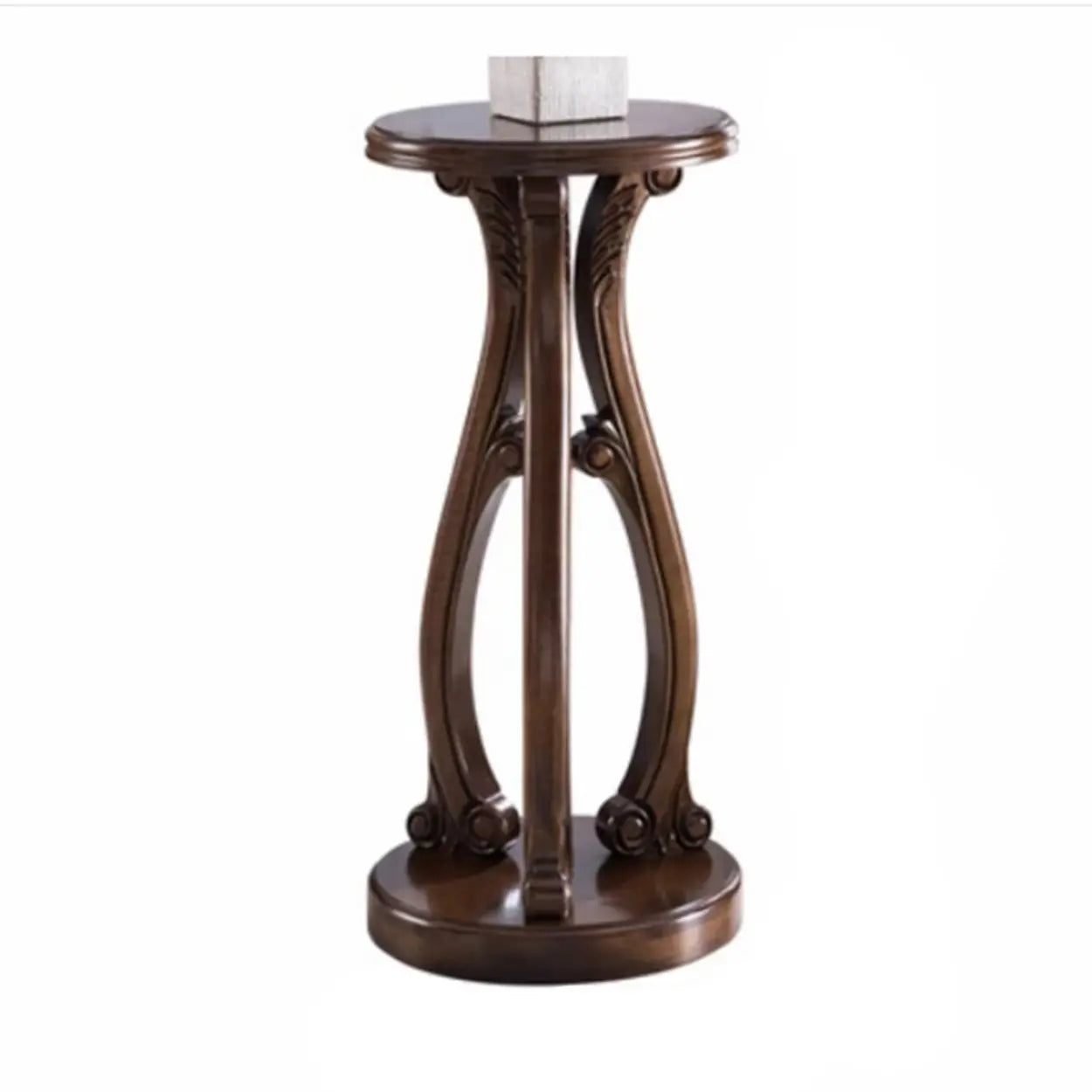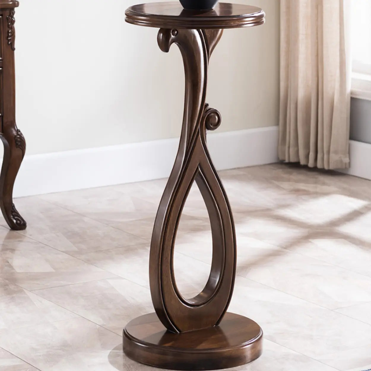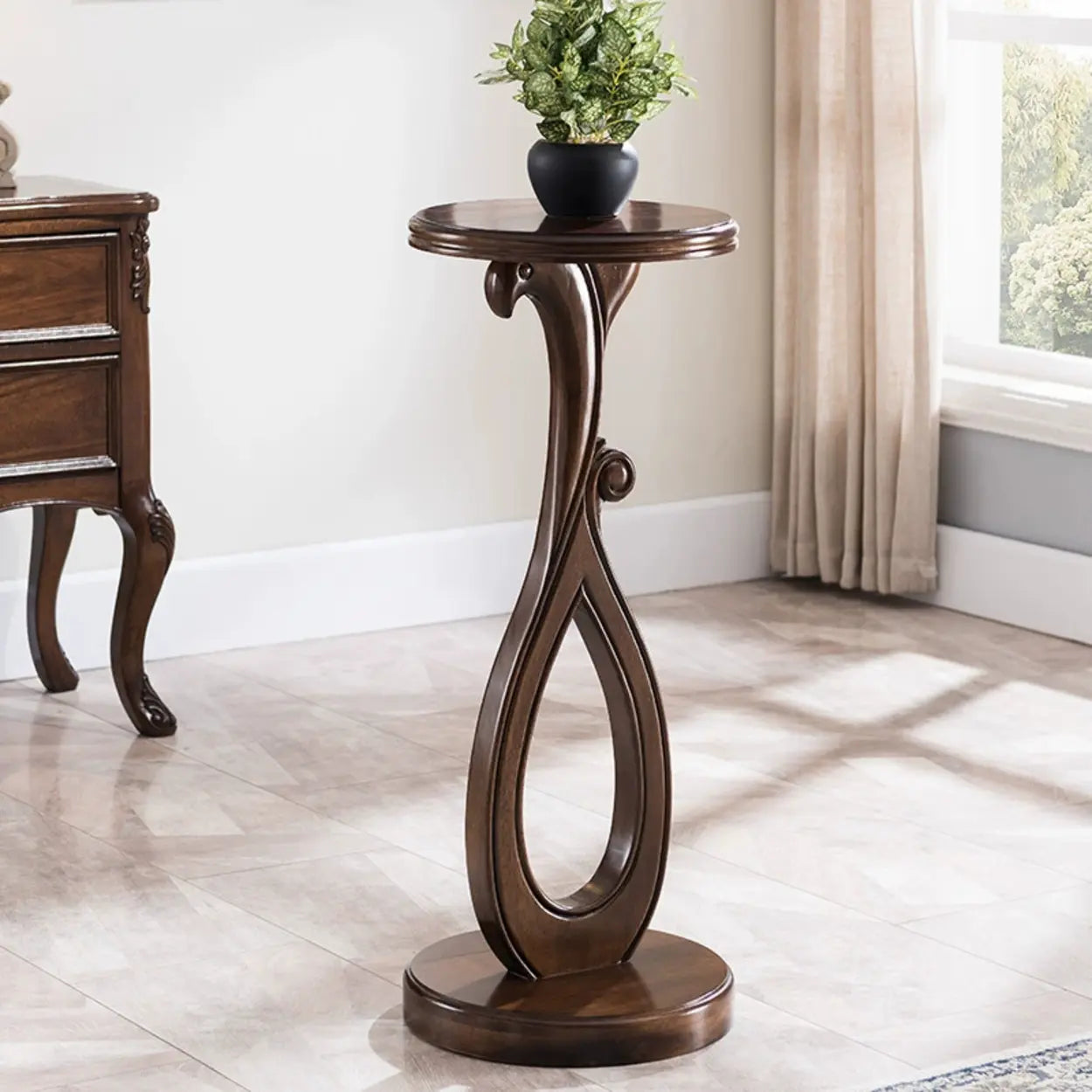 Elegant Curved Pedestal Cherry Wood Round Plant Stand