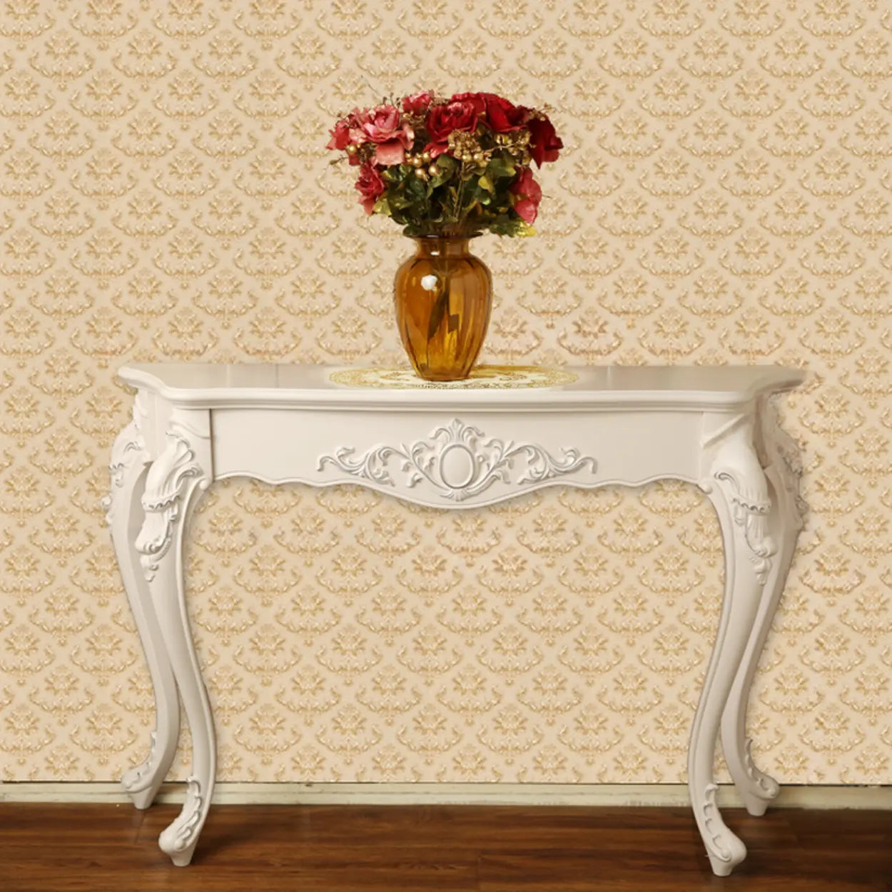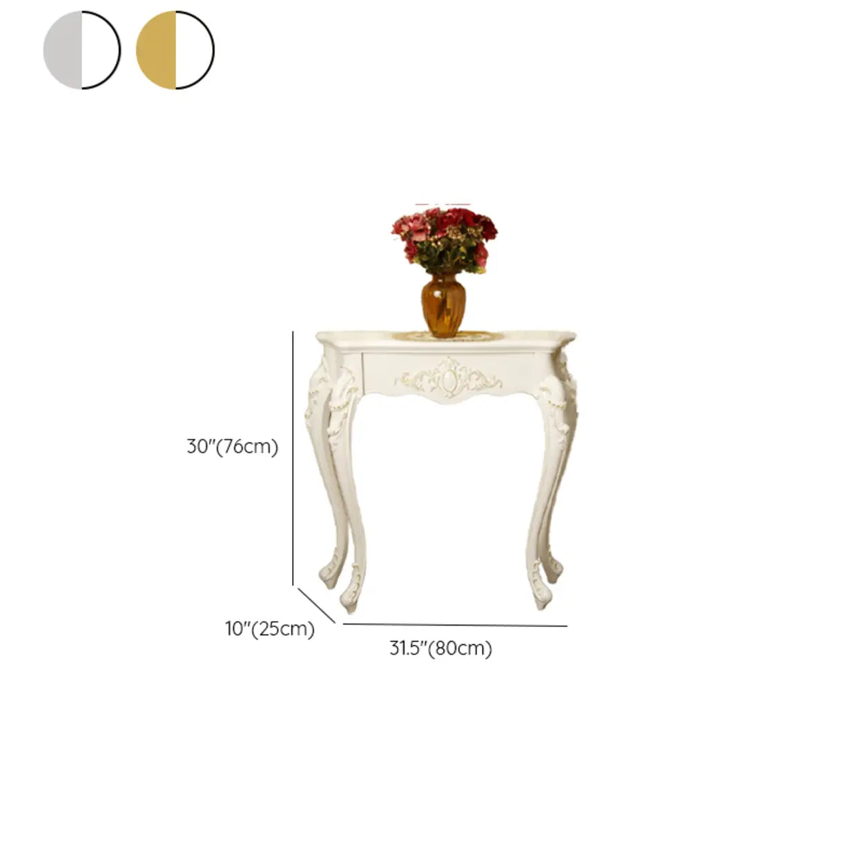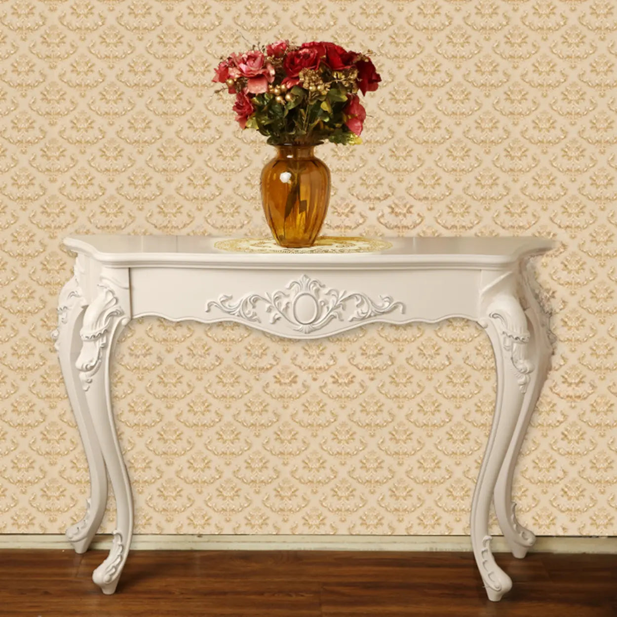 This elegant curved wooden cream console table is a perfect combination of classic and modern styles, bringing a unique charm to your home. Its graceful curve design and exquisite carved details make every corner full of artistic atmosphere. Whether it is placed in the living room, entrance or bedroom, it can easily enhance the overall style.