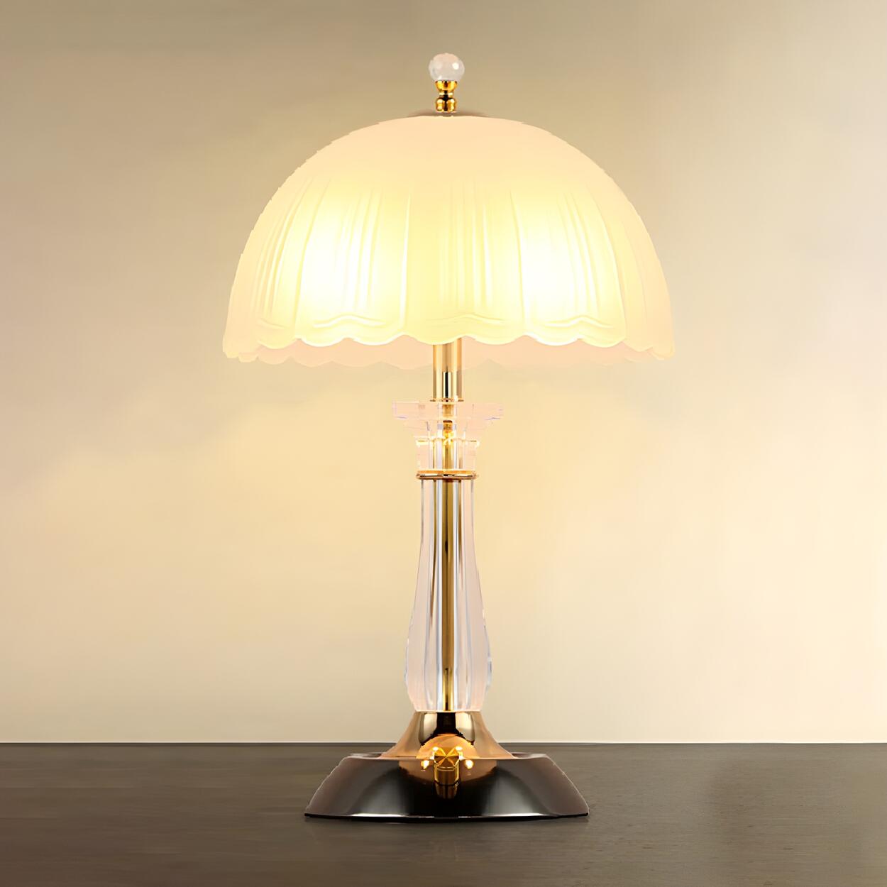 Elegant Dome Frosted Glass Shade Crystal Table Lamp