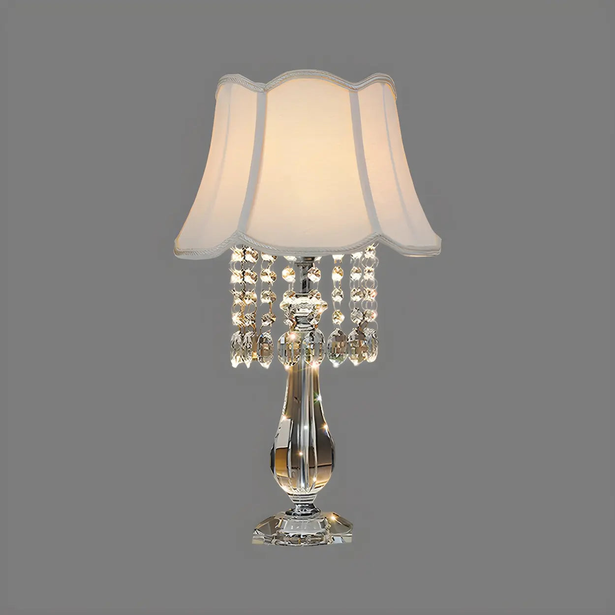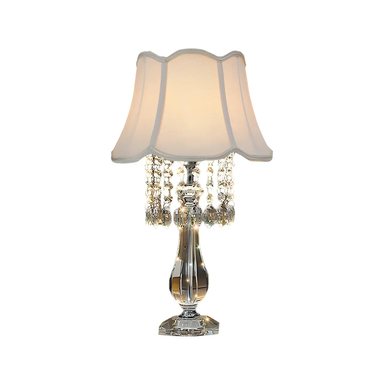 This classic table lamp boosts a touch of luxury to your bedroom with its delicate crystal bead design and elegant pleated shade. Whether it is for reading in the evening or creating a cozy bedtime environment, it can perfectly refine the atmosphere of your home. This lamp is a tool for lighting and also a decorative work of art.