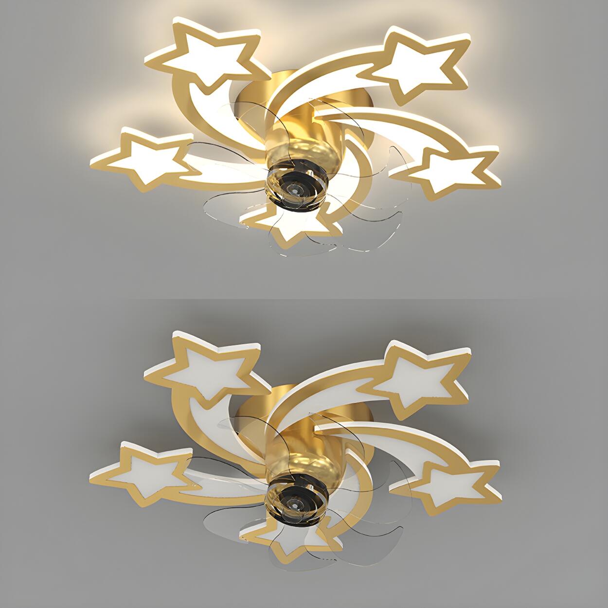 Elegant Gold Star LED Flush Ceiling Fan with Light
