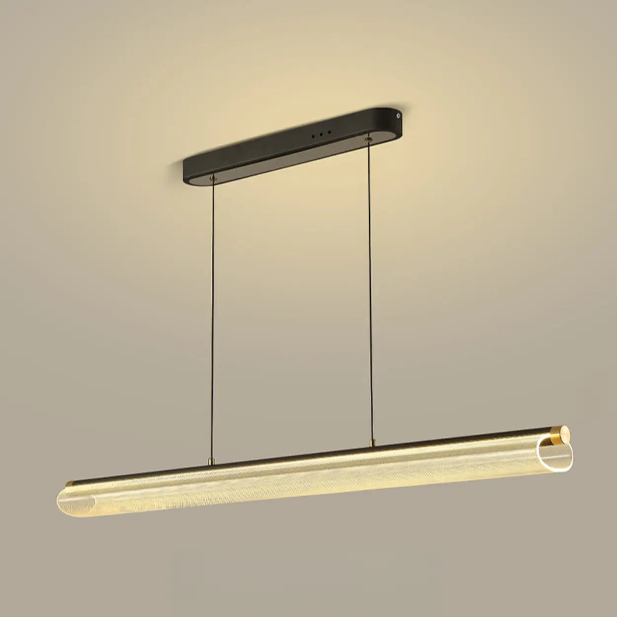 This modern style linear glass cylinder chandelier creates a simple and elegant lighting experience for your dining table, bar and kitchen island. The selected high-transmittance glass and metallic black finish show the ultimate fashion beauty. Whether it is a family gathering or a business dinner, its unique lamp body shape and soft and uniform LED light source can instantly make the space glow with high-end texture. Two sizes (35.5"/47.5") are available to accurately fit the needs of different spaces. Easy to install, it adds a touch of simplicity and temperament to your home or office environment.