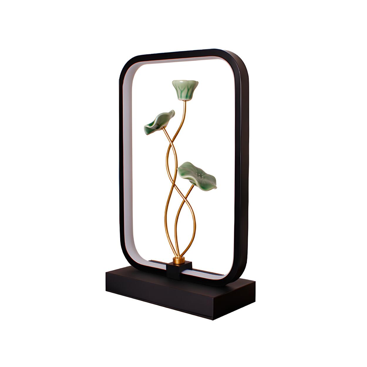 Elegant Lotus Black Geometric Frame Decor Table Lamp