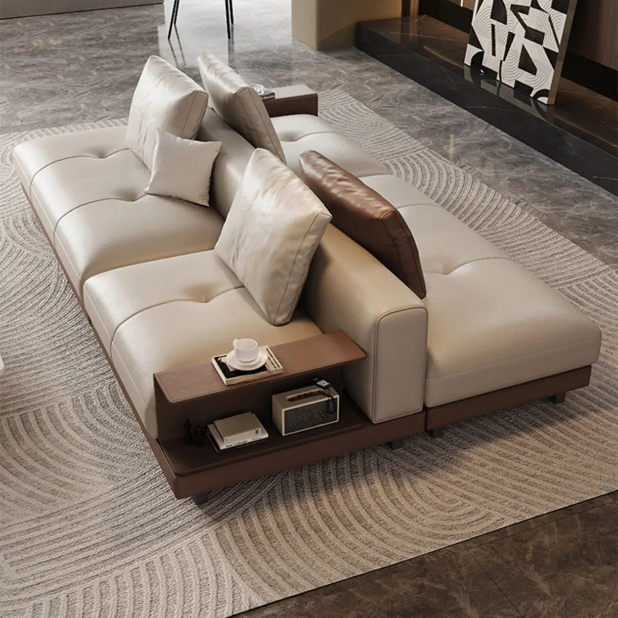 This modern leather sofa combines elegance and comfort, making it an ideal choice for interior furniture. The beige hue adds elegance and harmony to your space. Its superior design makes it a great choice for relaxation and entertaining.