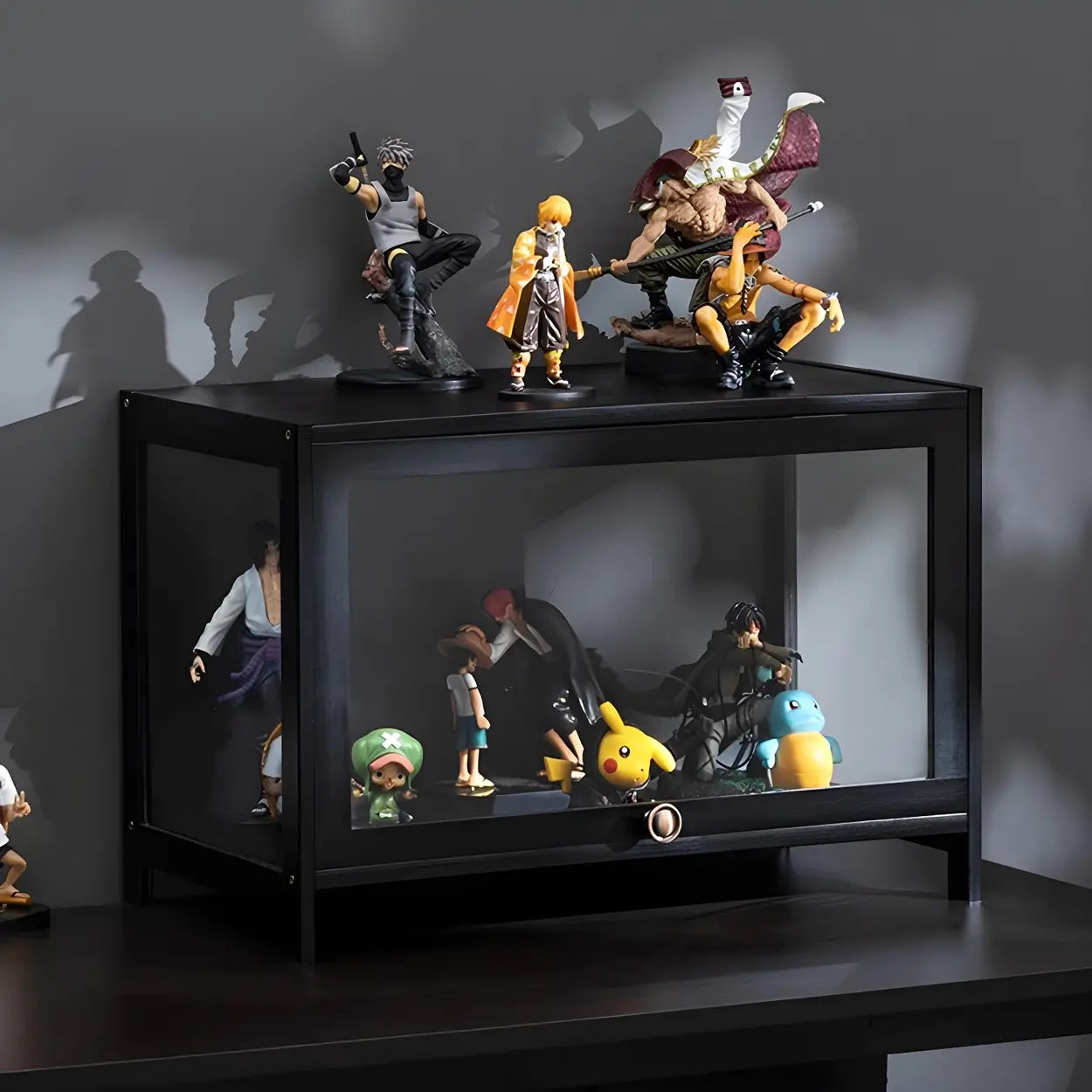 Fashionable Black Bamboo Clear Figure Display Cabinet